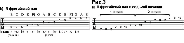 ступени, В, гаммы G мажор. Рисунок 3а показывает аппликатуру В-фригийского