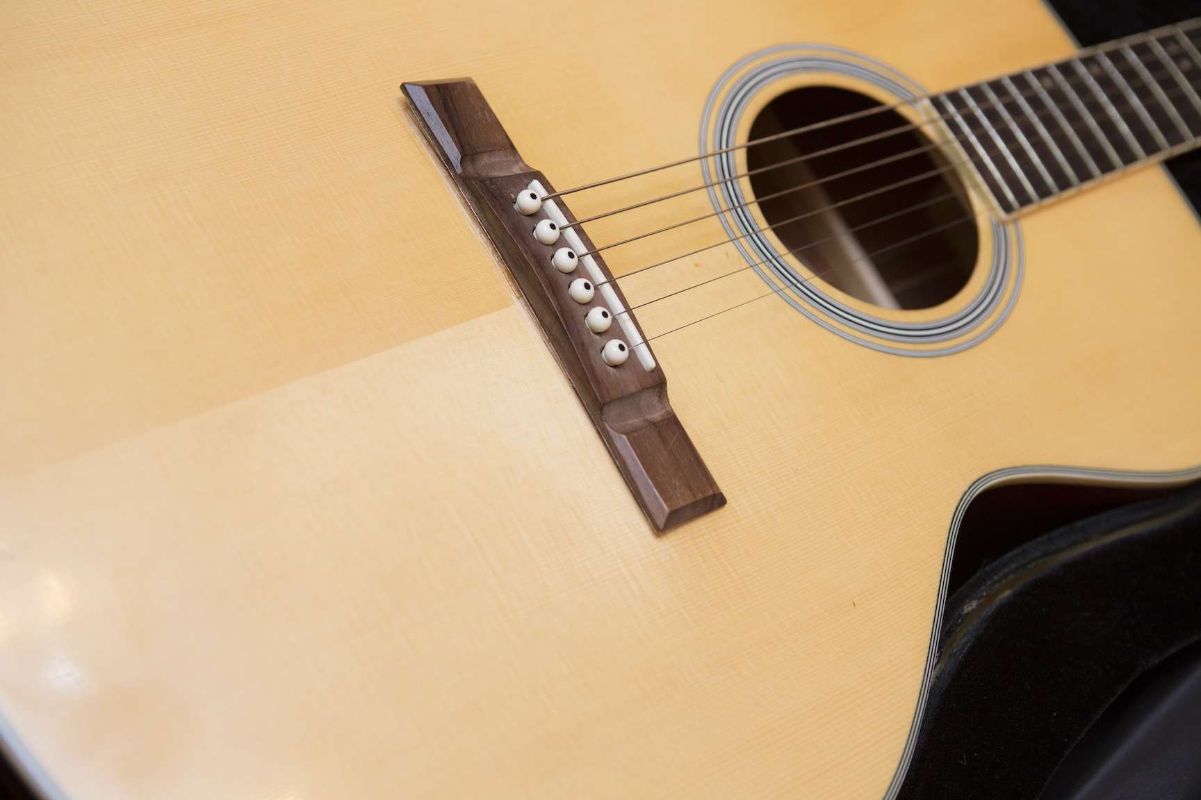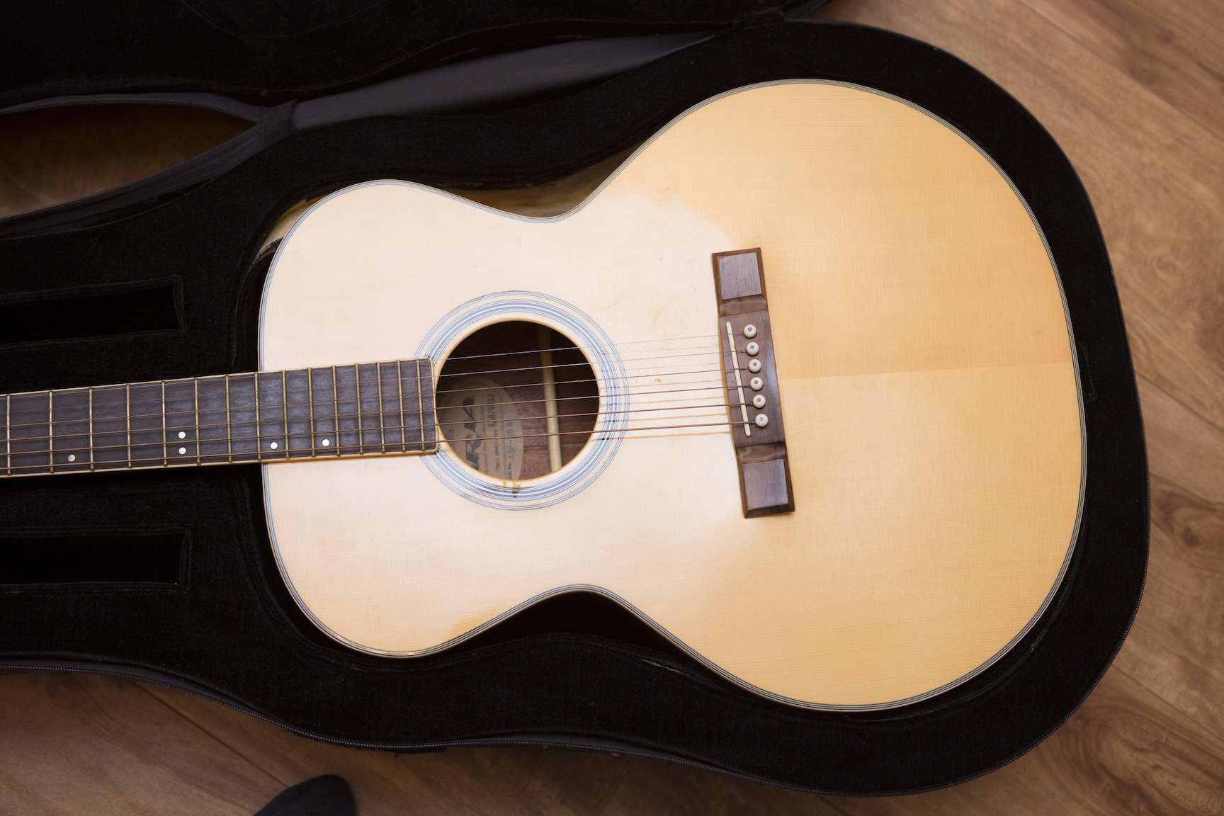 Продам акустическую гитару в прекрасном жестком кофре. В гитаре все хорошо за исключением одного момента - отваливается нижний порожек, на фото видно. Надо ремонтировать. В кофре отошла ткань в паре мест - ее просто приклеить. Продаю не потому что гитара безнадежна или еще чего, просто не играю на ней (оставил друг, который эммигрировал), а места кофр занимает много.