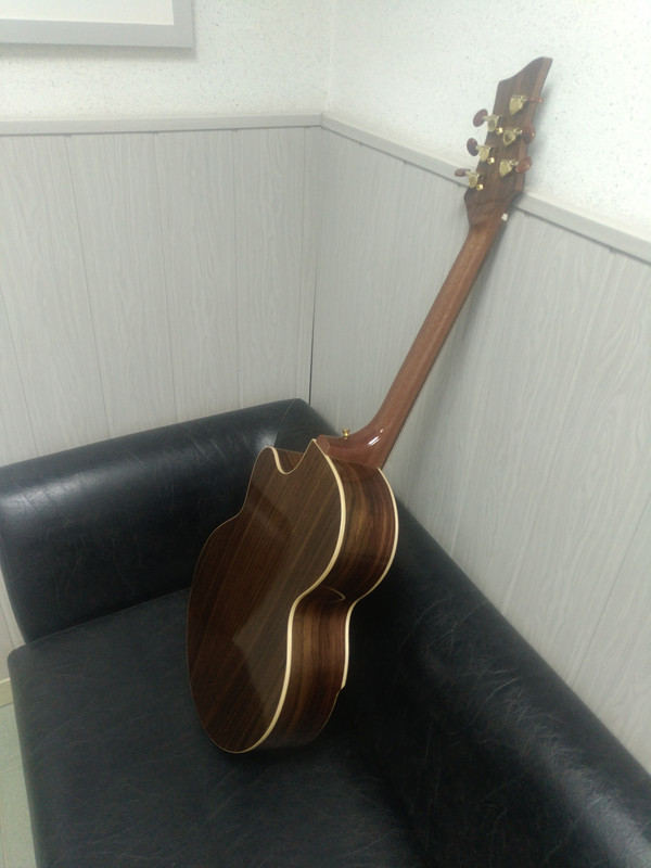 Материал корпуса : передняя дека -- ель кавказская ; задняя дека , обечайки -- палисандр. Гриф -- красное дерево . Головка грифа , армрест -- венге. Материал верхнего и нижнего порожков -- кость натуральная. Длина мензуры -- 635 - 685 мм соответственно. Система пружин -- scalloped X-bracing. Накладка , бридж -- индийский палисандр. Крышка головки анкера на магнитах. Скажем "НЕТ" вечно слизанным и ржавым головкам шурупов. !