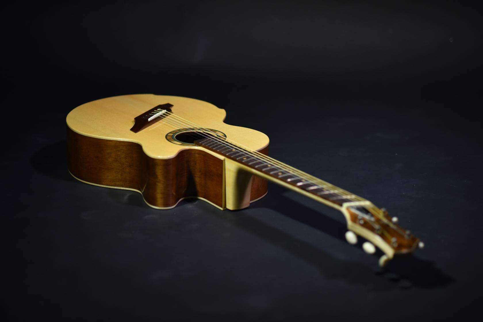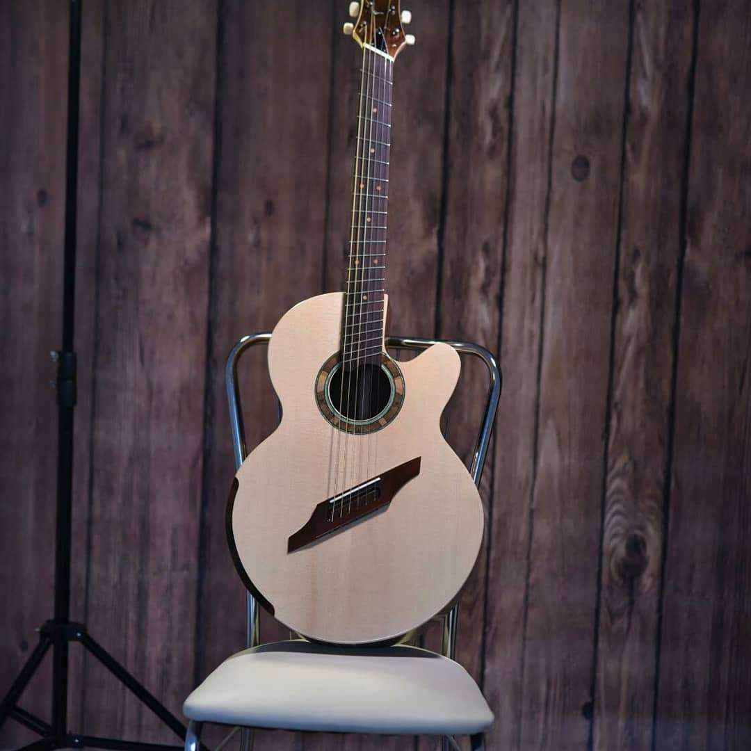 Акустическая шестиструнная гитара из массива . Мультимензурная (веерные лады). Передняя дека —ель кавказская. Задняя дека , обечайка —палисандр мадагаскарский. Гриф — клён. Бридж , накладка грифа —палисандр. Армрест , головка грифа , розетка, кант — макоре , орех , клён. Длина мензуры — 635 мм - 685 мм соответственно. Радиус накладки — 400 мм (16").