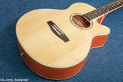На продаже бюджетная, но при этом отстроеная и доведенная до ума акустика. Данная модель отличается удобством доступа к верхним ладам благодаря вырезу в деке. Тембр у гитары мощный, насыщенный и уверенный, прекрасно подойдет и для дома и для компании. Инструмент полностью исправен и отстроен, струны низко, играть удобно. Струны свежие, инструмент новый, в магазинной коробке.