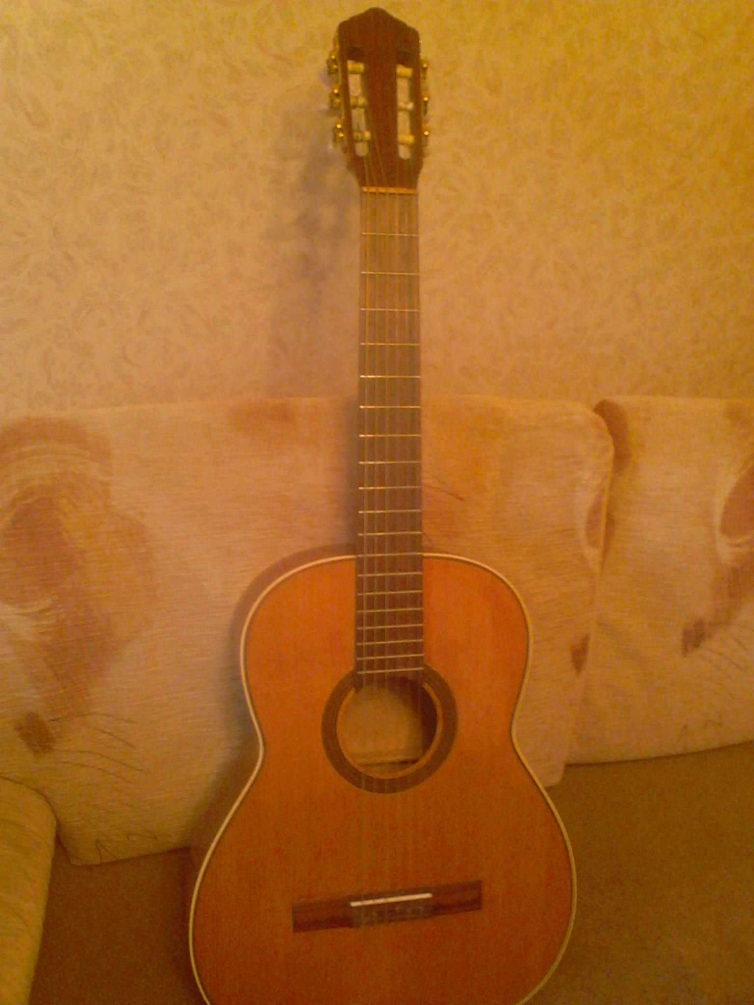 Классическая гитара приблизительно 1986г.То есть имеются потертости по деке,без трещин и т д Колки в отличном состоянии,строит.Цена 2000р