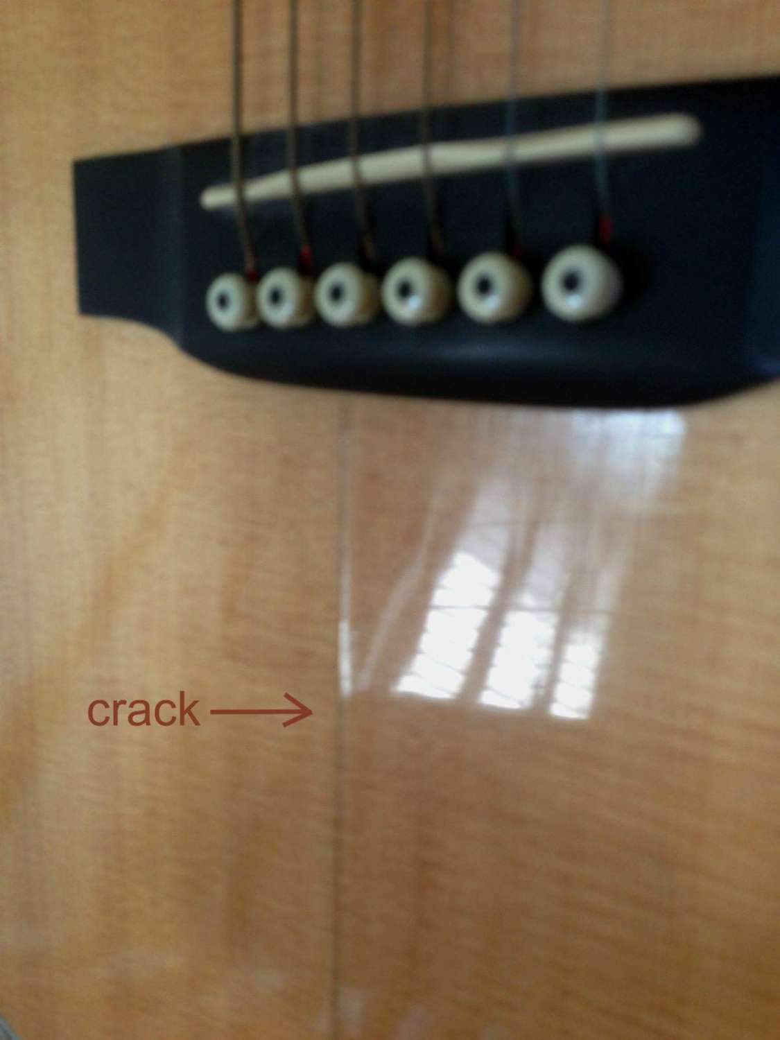 Гитара вцелом в хорошем состоянии, единственный серьезный минус – трещина в лакокрасочном покрытии верхней деки из-за хранения в неправильной влажности. Это распространенное явление для американских гитар и особенно может произойти после покупки нового инструмента. Трещина была отремонтирована квалифицированным мастером для обеспечения того, чтобы она не открывалась и оставалась в стабильности. И конечно она никаким образом не влияет на звук, который очень хорош!