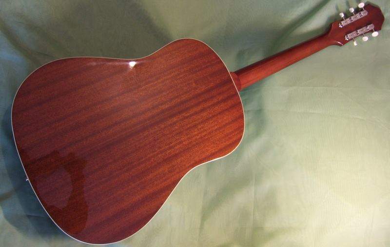 Гитара, которая подарила нам "Yesterday". Вдохновителем для создания этой гитары стала техасская акустика 1964, топ из цельной ели и нижняя дека которой обеспечивает полный, богатый звук. Цельный, сделанный из махогони гриф этой гитары, который имеет палисандровую накладку и мензуру 25,5, надежно вклеен в корпус. Правильная настройка обеспечивается винтажными тюнерами с маленькими кнопками.