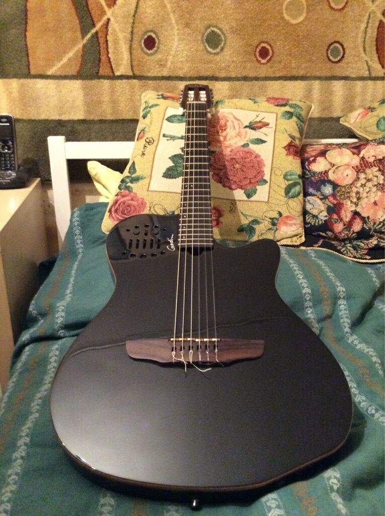 ПРОДАНОhttp://www.godinguitars.com/godinacsslimp.htmЭлектроакустика с нейлоном, миди-датчиком и узким грифом.