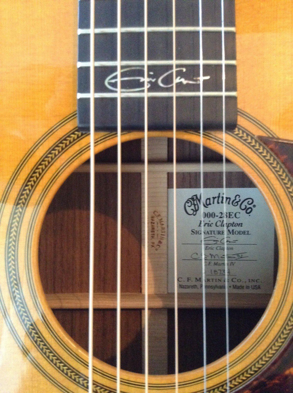 Martin 000-28EC Eric Clapton 2011 года - подписная акустическая гитара Eric Clapton. Общее состояние превосходное, но есть небольшой дефект в виде отклеивающегося биндинга (Такое бывает у гитар Martin. Смотри последние два фото.) в районе "талии". Дефект чисто косметический и вполне можно приклеить (сейчас нет времени заниматься).