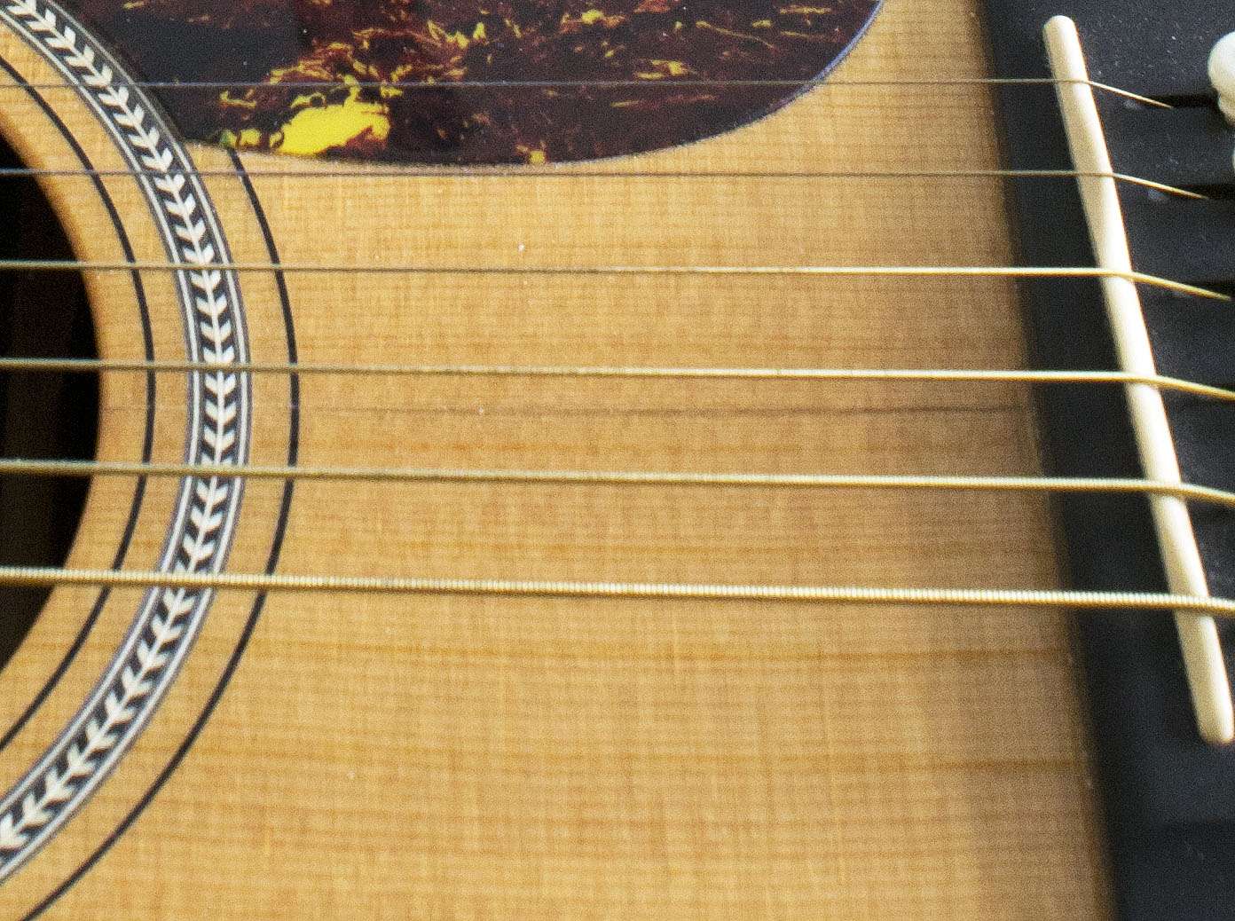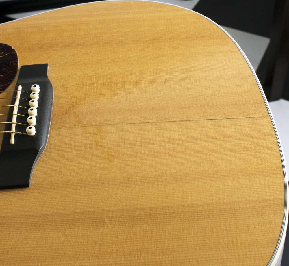 Имеются 2 "стандартные" трещинки на верхней деке. Показаны на фото. Заделаны мастером и дека в этих местах усилена с обратной стороны.