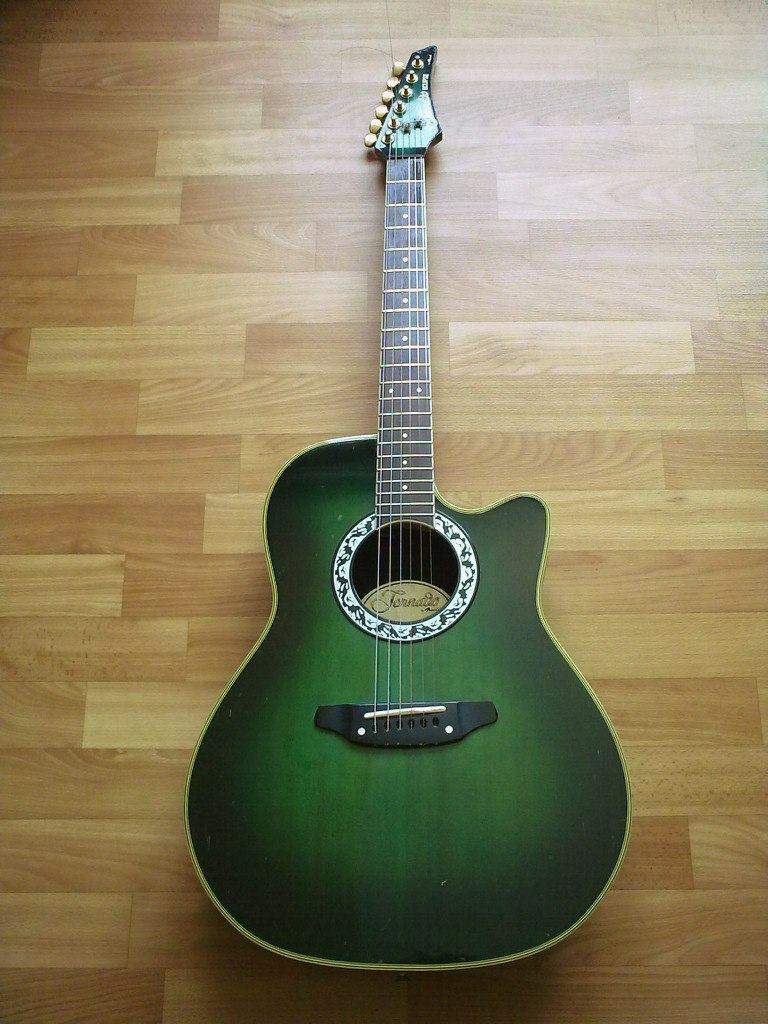 http://vk.com/album-30364875_175793508Очень удобный и красивый инструмент с удивительным звучанием и высочайшим качеством изготовления. Косметическое состояние на "4+" - имеются всякие мелкие "возрастные" коцки и потертости на деке, на накладке грифа есть пара сколов на 1 и 2 ладах, визуально и при игре это почти не заметно и на звучание гитары никак не влияет. Функционал на твердую "5", все полностью исправно, отстроено и готово к работе, накладка почищена и пропитана лимонным маслом, лады не новые, но имеют большой запас по ресурсу, родная электроника прекрасно функционирует, и благодаря трехполосному эквалайзеру дает широкие возможности по регулировке частот, родной пъезодатчик отлично работает и заслуживает только самых высоких оценок, стоят колки "Made in Japan", установлены новые струны. Гитара обладает глубоким, мощным и кристально чистым звучанием.