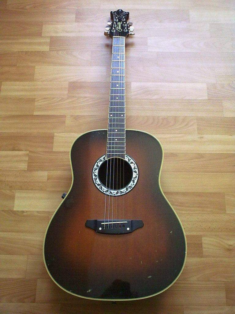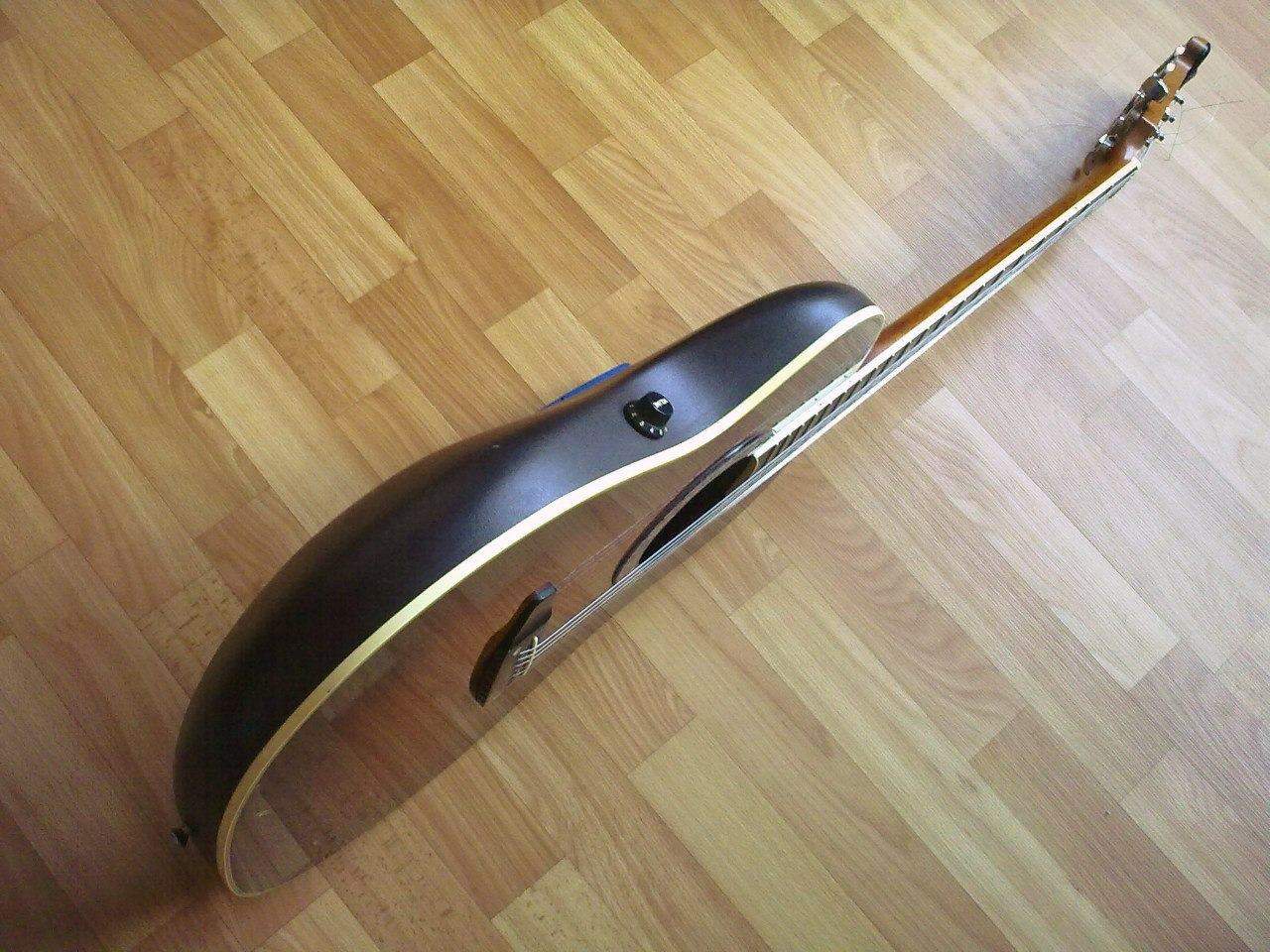 http://vk.com/album-30364875_175795106Очень удобный инструмент с удивительным звучанием и высочайшим качеством изготовления. Косметическое состояние на "4+" - имеются всякие мелкие "возрастные" коцки и потертости на деке, но нет ни одного скола. Функционал на твердую "5", все полностью исправно, отстроено и готово к работе, накладка почищена и пропитана лимонным маслом, установлены новые струны, лады почти как новые, на грифе сделана аккуратная и красивая окантовка, установлены колки GOTOH, родной пьезодатчик прекрасно функционирует и заслуживает только самых высоких оценок, причем работает он без батарейки. Гитара обладает глубоким, мощным и кристально чистым звучанием. Отличный вариант для ценителей акустик в формате Ovation. Качество изготовления, эргономика и звучание гитар
