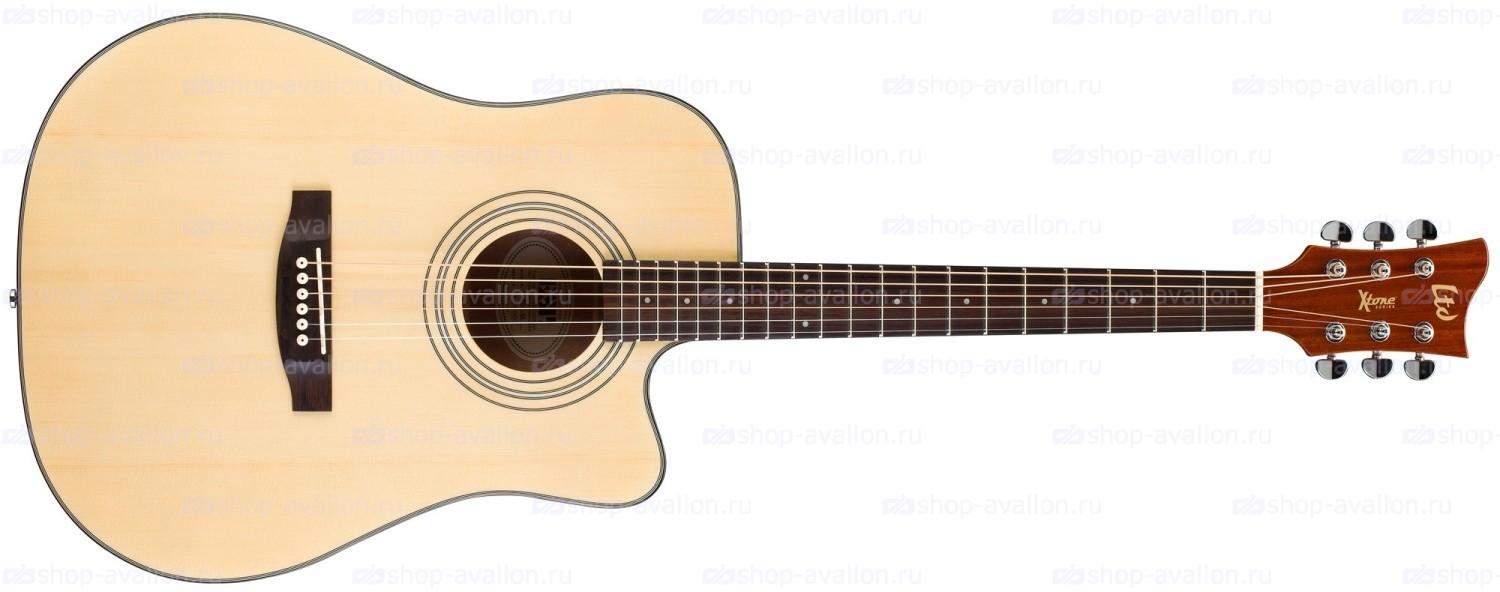 XTONE DC-5E NAT Электроакустическая гитара с датчиком и эквалайзером ESP 2-Band Preamp, корпус dreadnought красное дерево с верхом из ели, , цвет натуральный—-