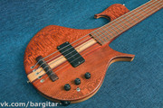 Продается мастеровой бас от мастера Александра Лучко. Инструмент выполнен из отборного экзотического дерева, с одним датчиком популярнейшего басового бренда Bartolini. Из отличительных особенностей инструмента: ухватистый гриф с ассиметричным профилем; очень интересная форма корпуса (как и всегда у Александра), который, к тому же, весьма тонок; маленькие гитарные колки (что не мешает им держать строй). Мензура 36' дает возможность опустить строй очень низко, не используя при этом сверхтолстые струны. В целом инструмент отлично подходит для современного метала и не только, ведь с такой мензурой 5 струна жирная и читаемая. Электроника очень гибкая в настройках и в сочетании с отсечками позволяет получить разнообразные варианты звучания.