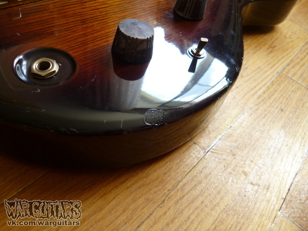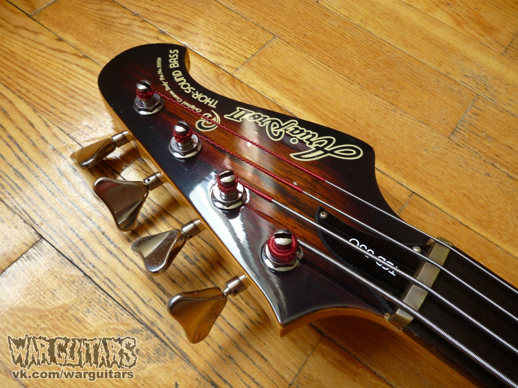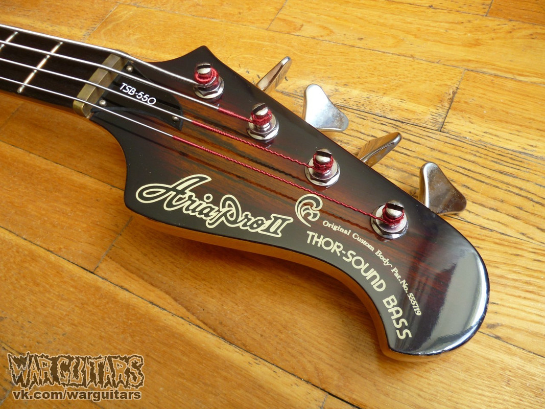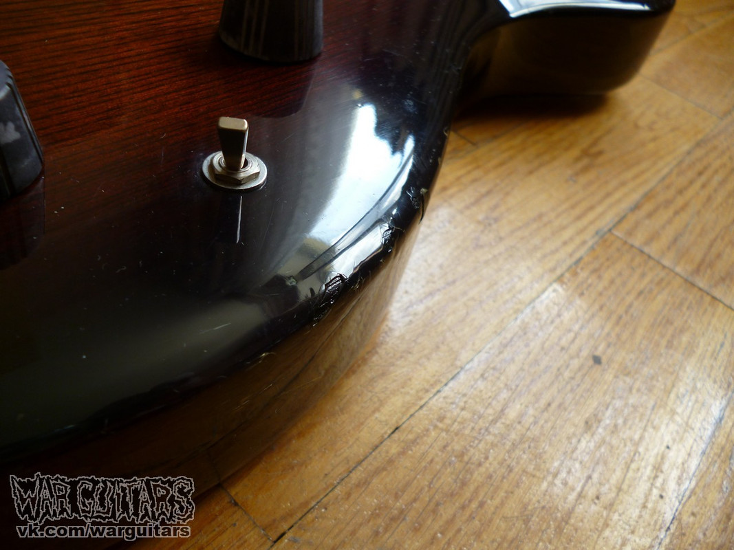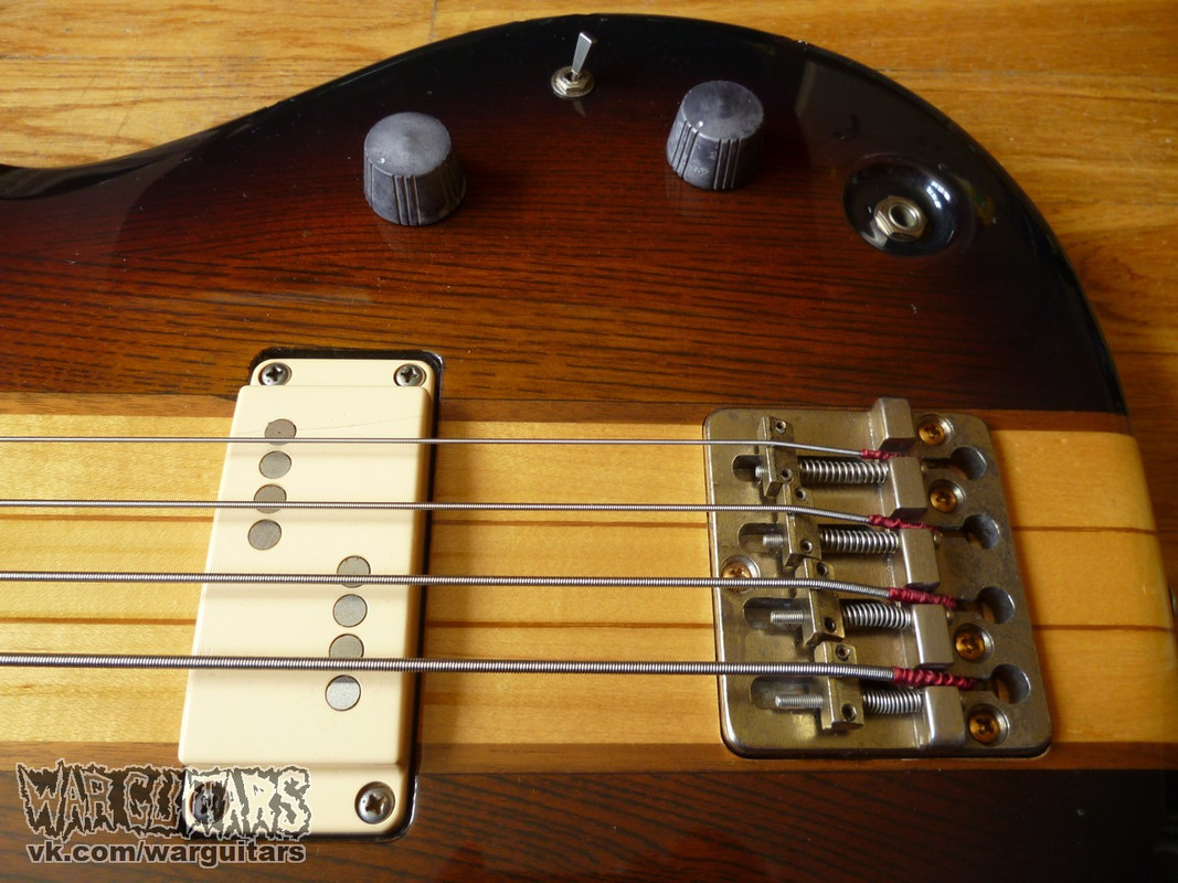 Бомбовый предтоповый (от единственного более старшего брата отличается только одним датчиком вместо двух) сквозной монстр-бас от Арии Про из ч0ткого 80-го года в крутейшей расцветке Japan Brown. Что мы имеем на борту? Ясеневая дека, пятикусковый гриф из переклейки клена и ореха с накладкой из палисандра, ромбы инкрустации из натурального перламутра, латунный порожек и единственный, но при этом очень внушительно рычащий, хамбакер с переключением режимов катушек. Солидный и взрослый бас, стоящий в одном ряду со своим знаменитым современником Ibanez Musician, например, но при этом более дешевый на вторичном рынке. Короче говоря, пушка вообще.