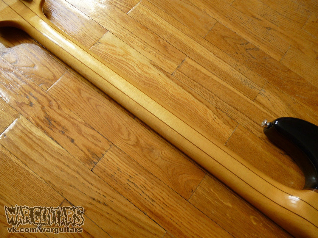 Гриф - пятикусковый клен/орех/палисандр (инкрустация из перламутра, порожек из латуни), сквозной, мензура 32"
