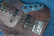 Отличнейший бас ручной работы, о чём ответственно заявляют японцы, производящие прекрасные инструменты под брендом Bacchus. Конструкция классическая и простая, но качество исполнения - выше всяких похвал. Пассивные датчики собственного производства выдают чёткий, детализированный звук с лёгким породистым гроулом в тембре. Тончайшее покрытие маслом даёт ни с чем не сравнимое ощущение живого дерева под пальцами. Инструмент отстроен для комфортной игры, радует как слух своим звучанием, так и глаз своим внешним видом.