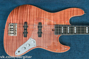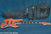 Фантастической красоты джаз бас ручной работы, о чём ответственно заявляют японцы, производящие прекрасные инструменты под брендом Bacchus. Конструкция почти классическая и простая, но качество исполнения - выше всяких похвал. Пассивные датчики собственного производства выдают чёткий, детализированный звук с лёгким породистым гроулом в тембре, а пуш/пулл на ручке тона включает оба сингла последовательно, как хамбакер, расширяя и без того богатую палитру звучания. Тончайшее покрытие маслом даёт ни с чем не сравнимое ощущение живого дерева под пальцами. Инструмент отстроен для комфортной игры, радует как слух своим звучанием, так и глаз своим феноменальным внешним видом.