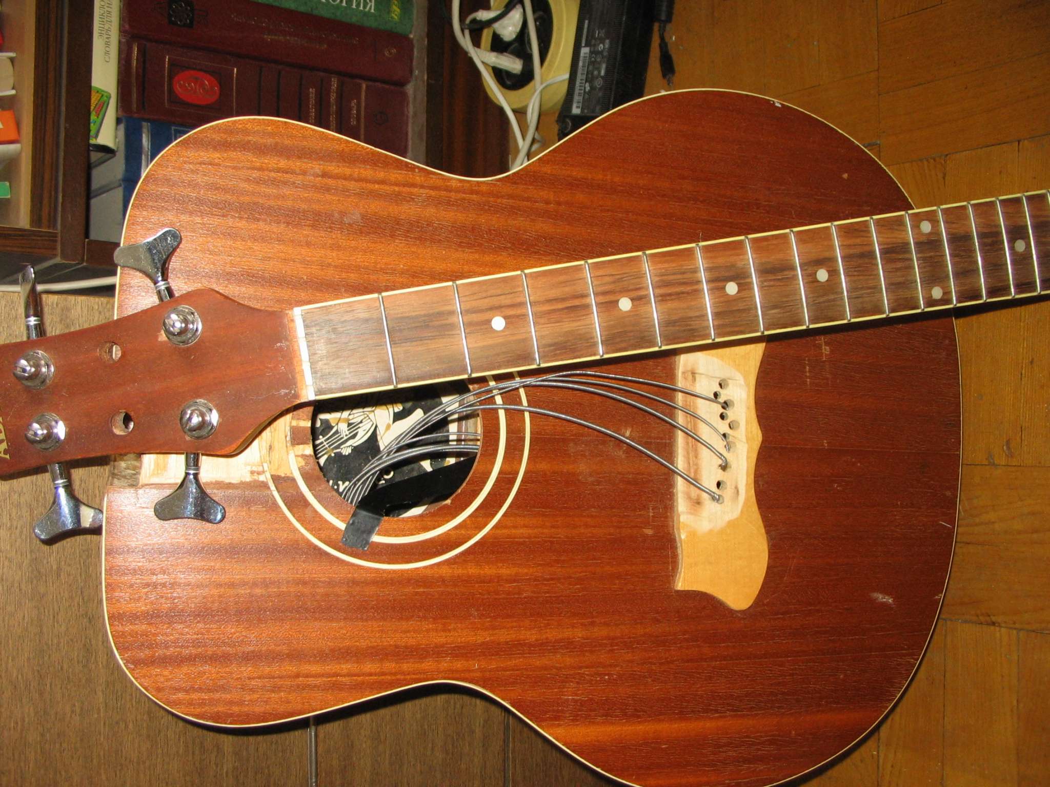Переделан из 12стр Орфей.Гриф от Адамс. Звучит действительно хорошо.4стр можно сделать 6стр.Есть колки и струныНадо дособрать и поставить бридж звучки и пьезу.Все есть.Внешн вид не показателен,косметика легко приводится в порядок.--9253681164