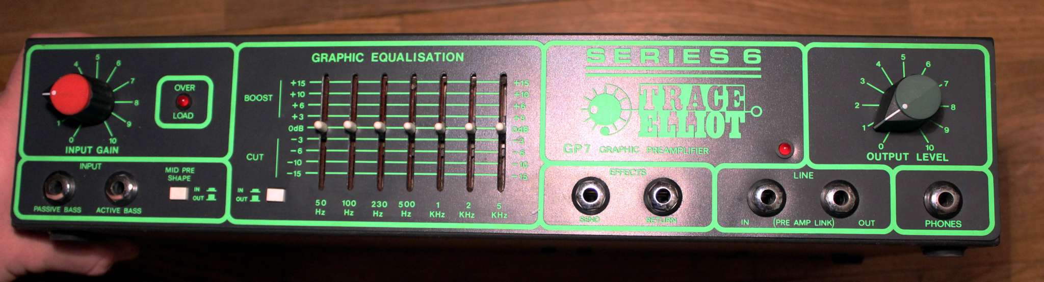 4) Trace Elliot AH-100 Series 6 - 100 Вт, GP7 предусилитель с 7-ми полосным эквалайзером, петля, фильтр средних частот, линейный выход, выход для наушников, шведский хенд-мейд кейс в комплекте. Made in United Kindom.