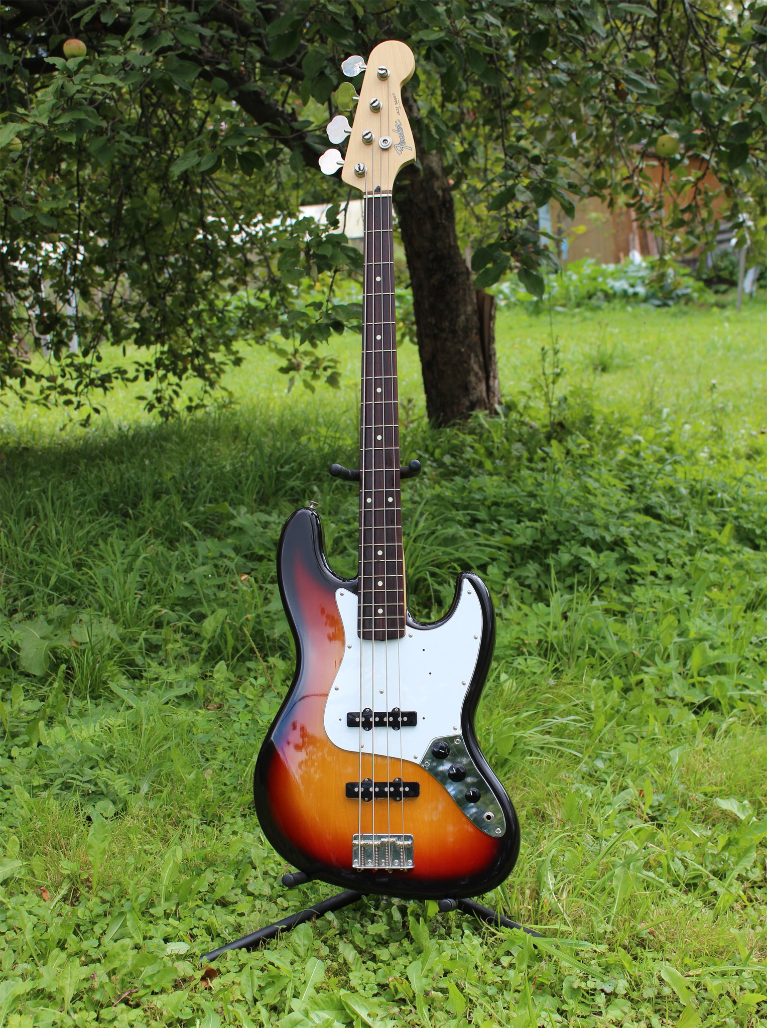 Продаю бас-гитару Fender Jazz Bass JB45 производства Япония, год выпуска 1993-1994 (см. серийник на фото). Корпус - липа, гриф - клен с орехом, накладка - палисандр. Родные звучки, мензура 432 мм, 184 мм радиус накладки, 20 ладов, лады с легким износом, есть пара царапин. В целом, для своих годов выглядит на отлично! Звучит как надо. Анкер рабочий, крутится в обе стороны.
