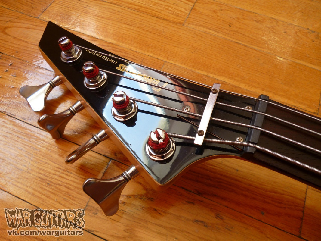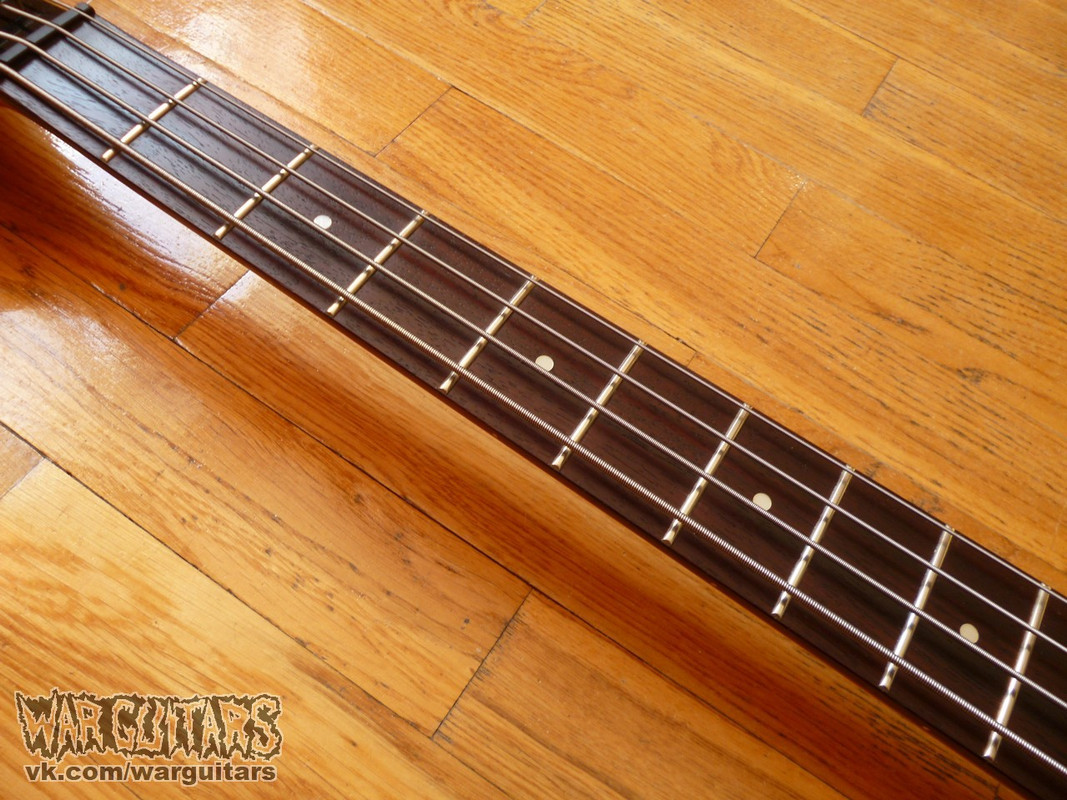 Классический японский бас формы Jackson Dinky - легкий, эргономичный, среднемензурный и универсальный по звуку. Чорный и адский, с клюшкой и всем, что мы любим, за мало денег. Вся электроника работает отлично (как и железяки, которые вам не хухры-мухры, а самим готохом деланы), ладов много. Есть небольшое искажение геометрии грифа (т.н. винт), при этом все отстраивается низко и звучит чисто, за исключением небольшого звона примерно за 17 ладом. Впрочем, вряд ли большинство басистов будет там играть, а в остальном свои функции топор выполняет на пять с плюсом!