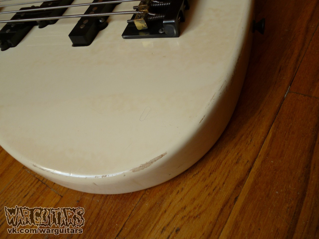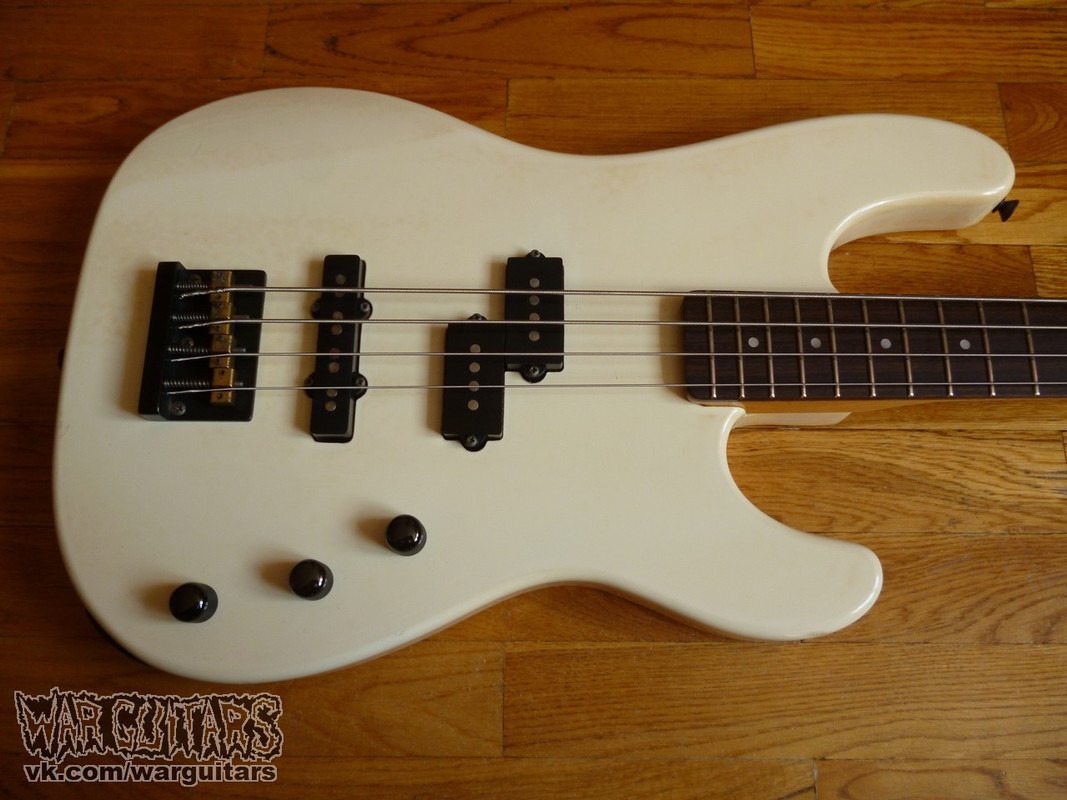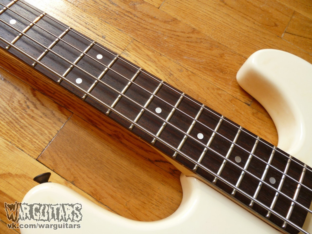 Еще один среднемензурный динки-бас - белый, о черной готоховской фурнитуре и датчиках, произведенный аж в далеком 85-м. Один из первых экземпляров серии, еще без скарф-джойнта и наклоненной головы грифа - с псевдофендеровской конструкцией. Пребывает в хорошем состоянии, пашет и готов стать вашим!