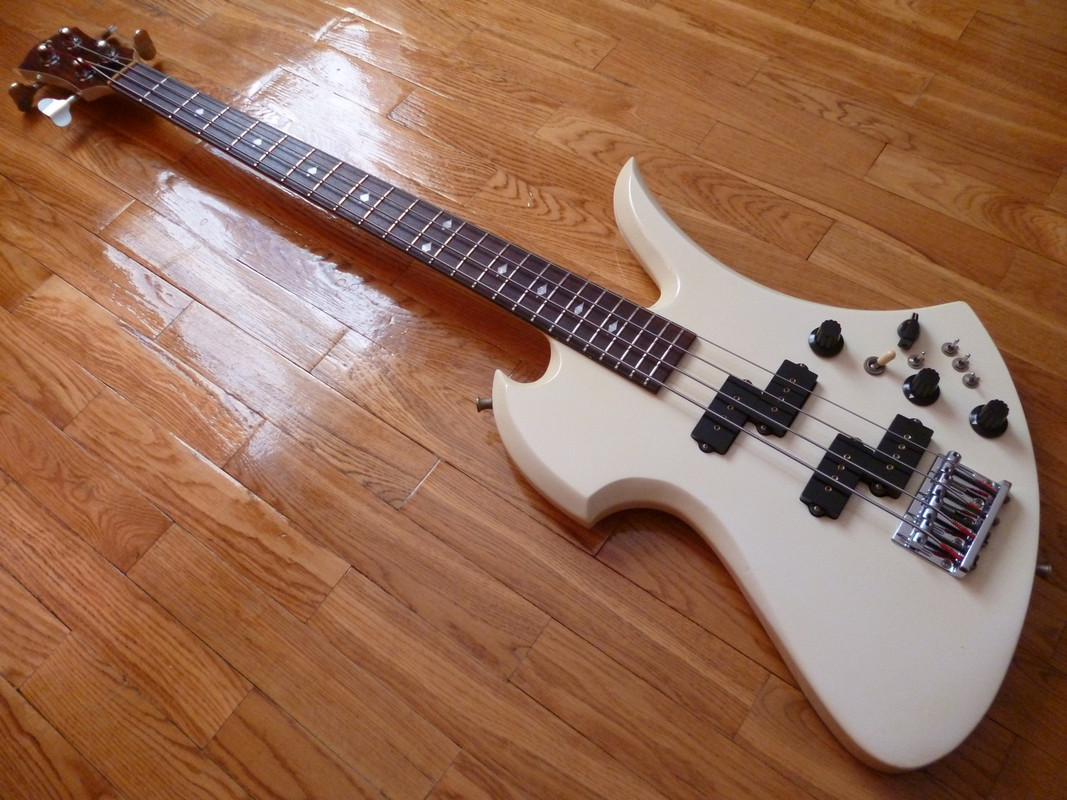 Классика лохматых годов - реплика пересмешника B.C.Rich от дяди-фернандеса. Соблюдены все пропорции и материалы - да, это кленовый сквозняк с орехом и краснухой, двумя "шашками" и электроникой похлеще чем в твоей тачке (ну или стиральной машине, не знаю). Полная комплектация, хорошее состояние, гре
