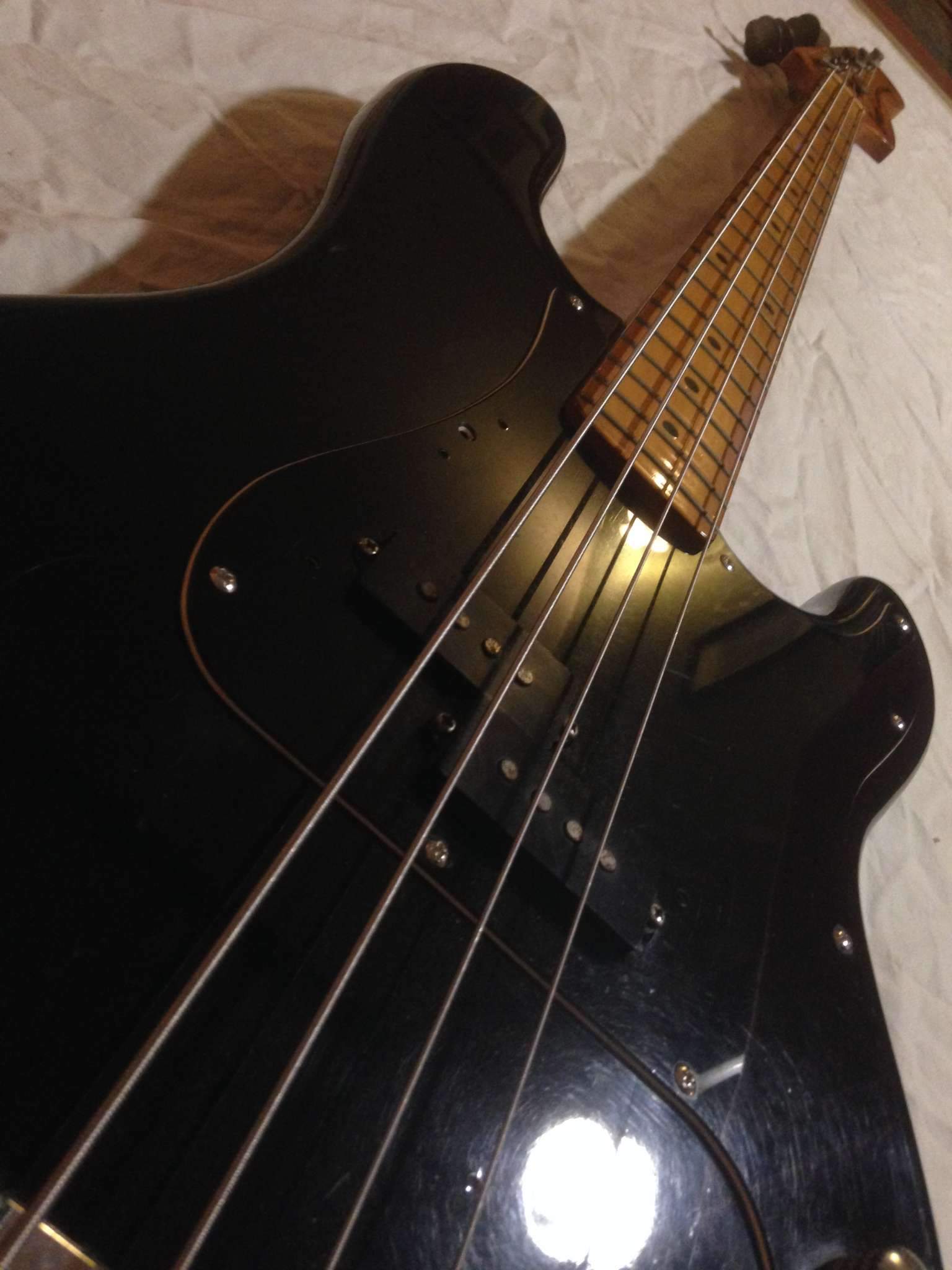 Олдовый прес из ясеня, с пробивным звуком, чёрной декой, кленовым грифом, а так же бас допилен клёвым бриджем фирмы Gotoh!Из минусов внешние повреждения и косметика в целом.