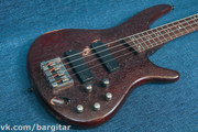 Модерновый бас корейского производства. Качество изготовления, как и всегда у Ibanez, превосходное. Благодаря звукоснимателям Bartolini MK 1-4 тембр очень мощный, пробивной, при этом трехполосный эквалайзер позволяет весьма гибко моделировать звук и добиваться разнообразного звучания. Можно сделать и лязгающий "трактор-бас", и мягкий, почти джазовый тон. На басу много играли и местами, как и у большинства таких же инструментов, протёрт тонкий лак, но технически гитара в полном порядке - струны низко, гриф ровный, играть удобно. Форма обтекаемая, эргономичная, бас не тяжёлый, руки и плечи не устают от продолжительной игры. В общем, отличный современный инструмент.