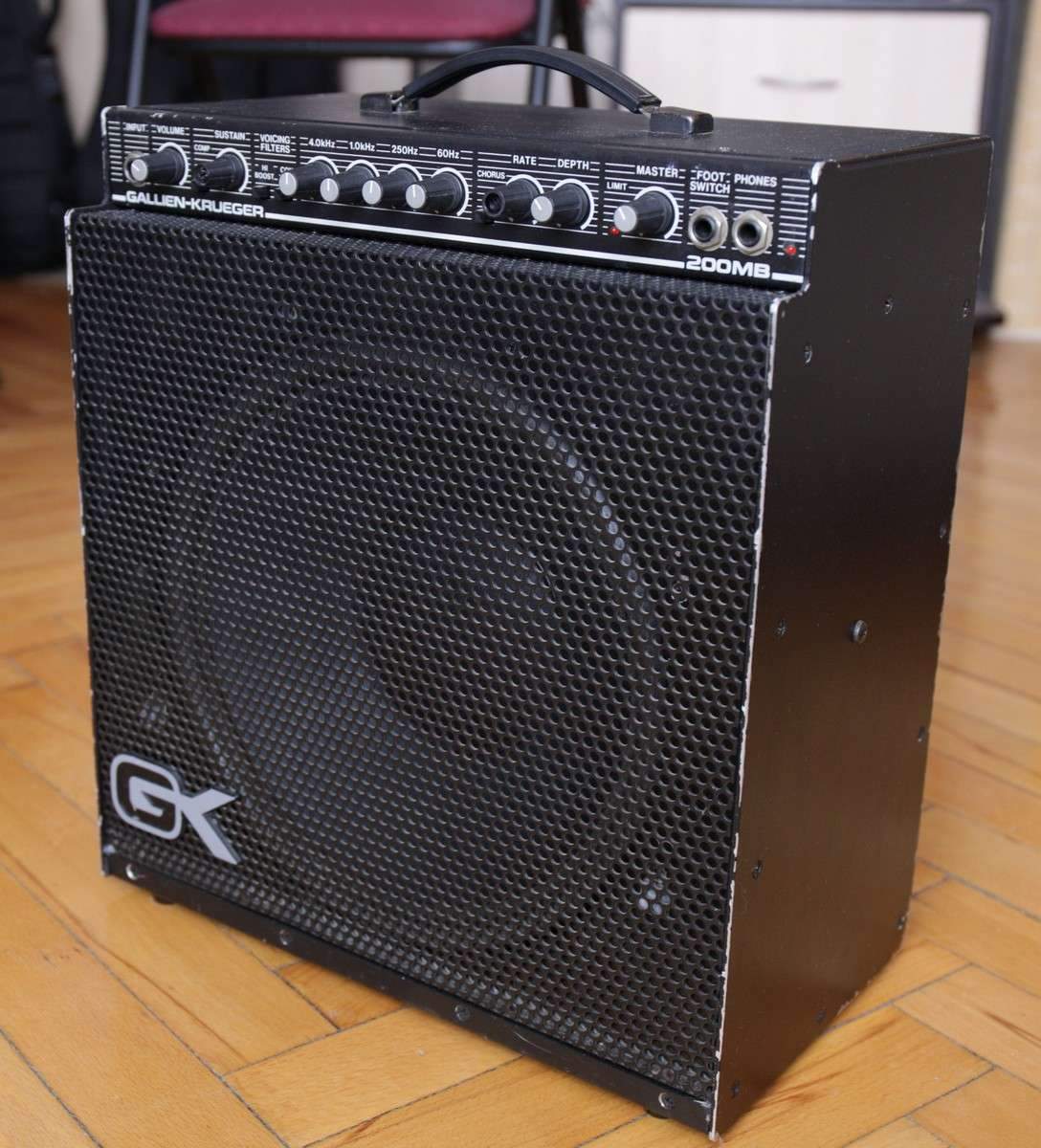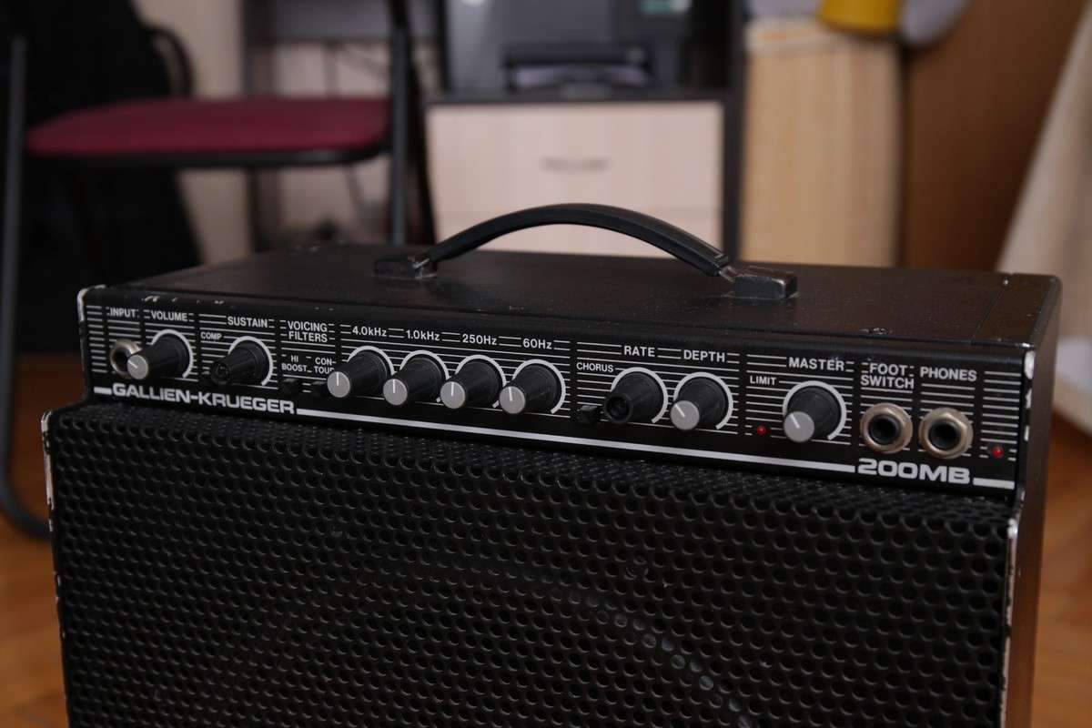 Продается комбик Gallien-Krueger 200MB (не путать с современными "головами" MB200). Сделан в 1987 году. Предок современных комбиков MB150. Старая схема на транзисторах. Мощность: 70 Вт, с доп. кабинетом 100 Вт. Динамик Eminence, 12". Вес: 11 кг (!).