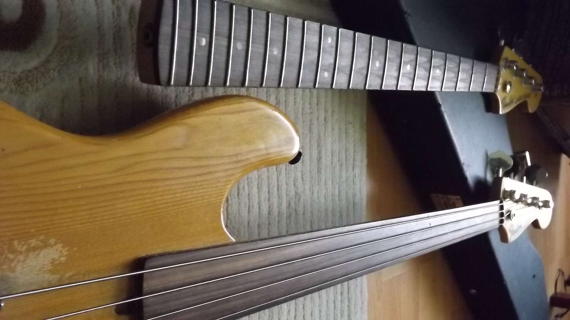 Дека- Ясень, грифы- клен/палисандр. В комплекте бас+ безладовый гриф+контурный кейс.
