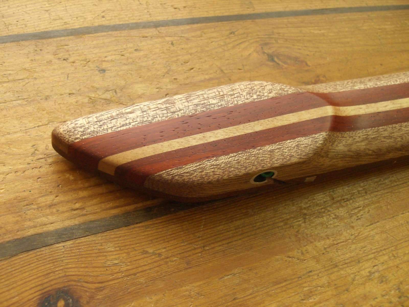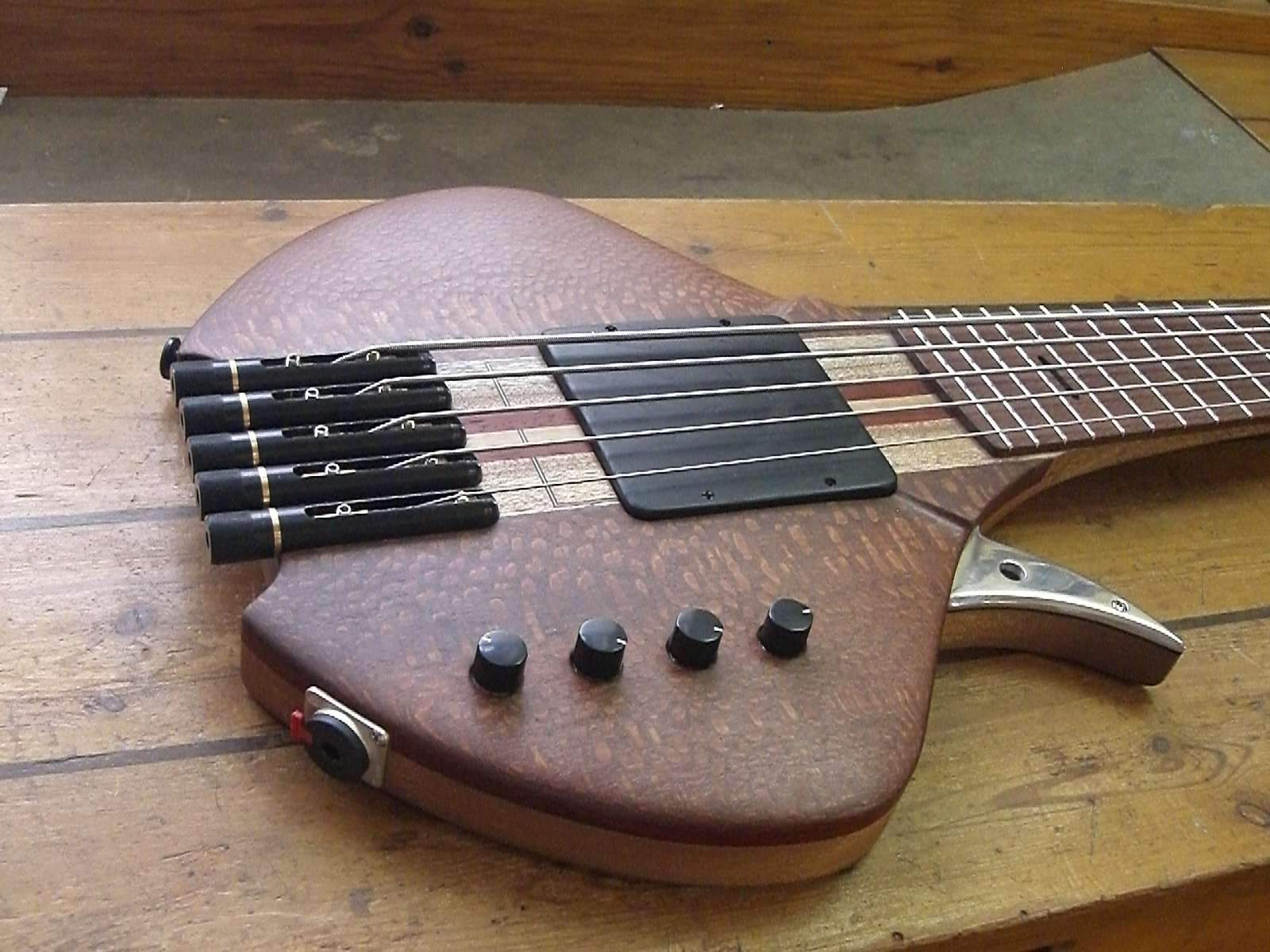 Сделан как песня с 3 - по14 мая. Идея Обри Бердслея. По материалу: гриф - габон, падук, анегри, корпус - лайсвуд, падук, корубикса, накладка лайсвуд. Мензура как всегда 36". Звучки мои, два сингла. Идеи крепления струн и пр. - даром. Звук как всегда - Обвал в горах, возможно более злой, чем предыдущие. Причем сейчас стоит СИ" - 145-я, гарантия 25 лет.