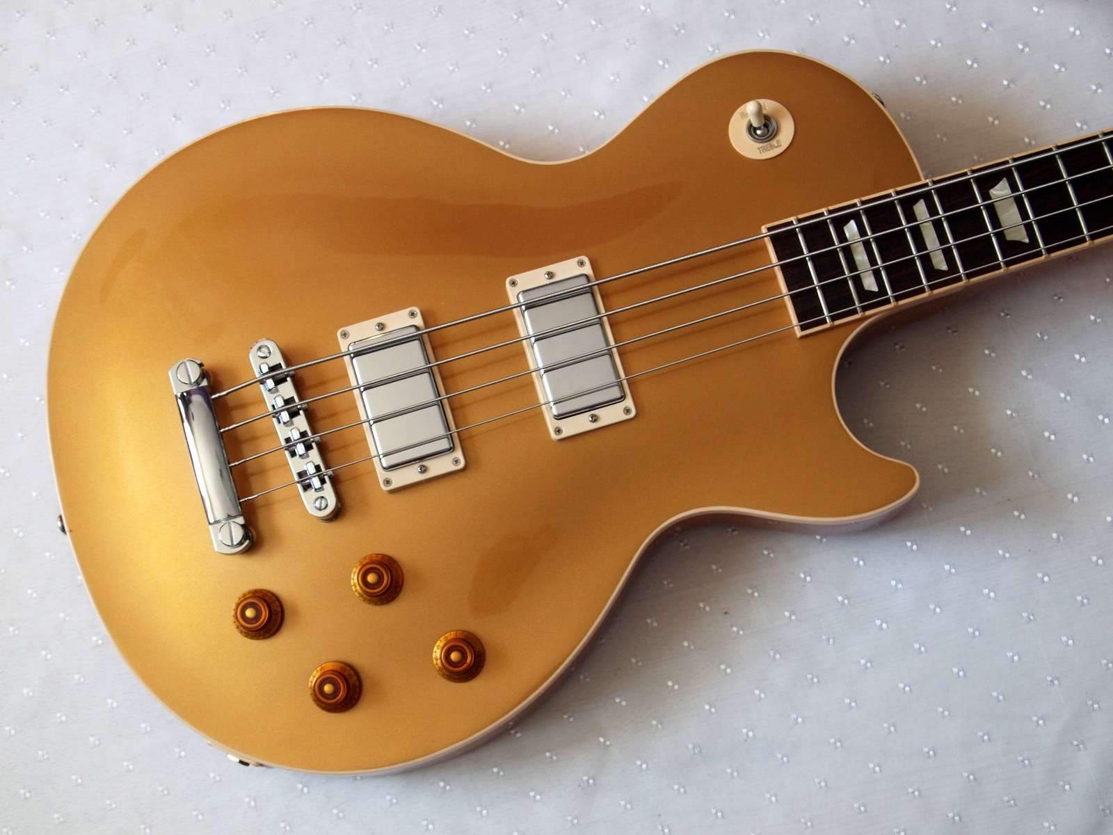 Бас в шикарном цвете Goldtop с мощным, плотным, двигающим стены и сносящим крыши звуком.