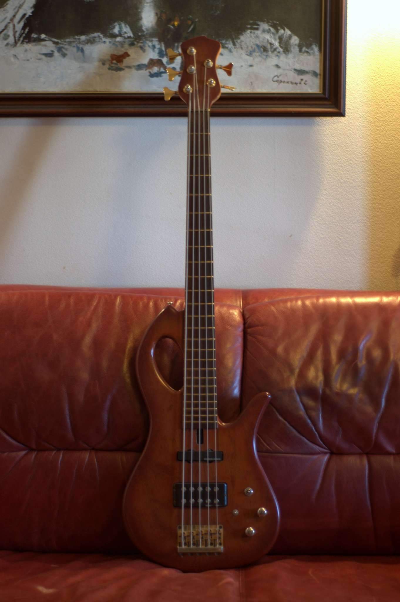 Краснуха, клен, датчики сейморы Basslines пассивы, гнездо для джека с защелкой, полный феншуй. Выглядит, как крутейшая эксклюзивная вещь, играется очень удобно и легко, а звучит так, что с закрытыми глазами можно кончить, умеет хоть металл, хоть блюзики и джазики, хоть эту вашу математику. При определенной сноровке сможете даже соляки из Ваенги.