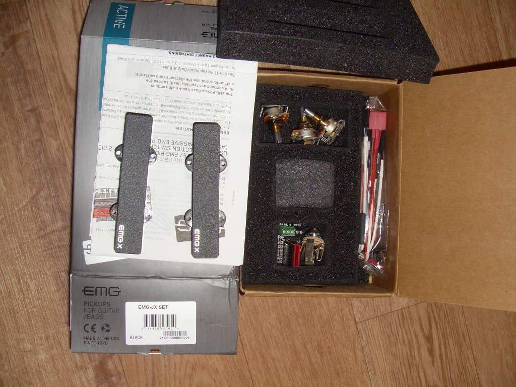 http://www.emgpickups.com/bass/j-models/x-series/jxset.html взамен родных select by emg , установлен бокс под две батареи типа "крона" , питание блока 18 v.