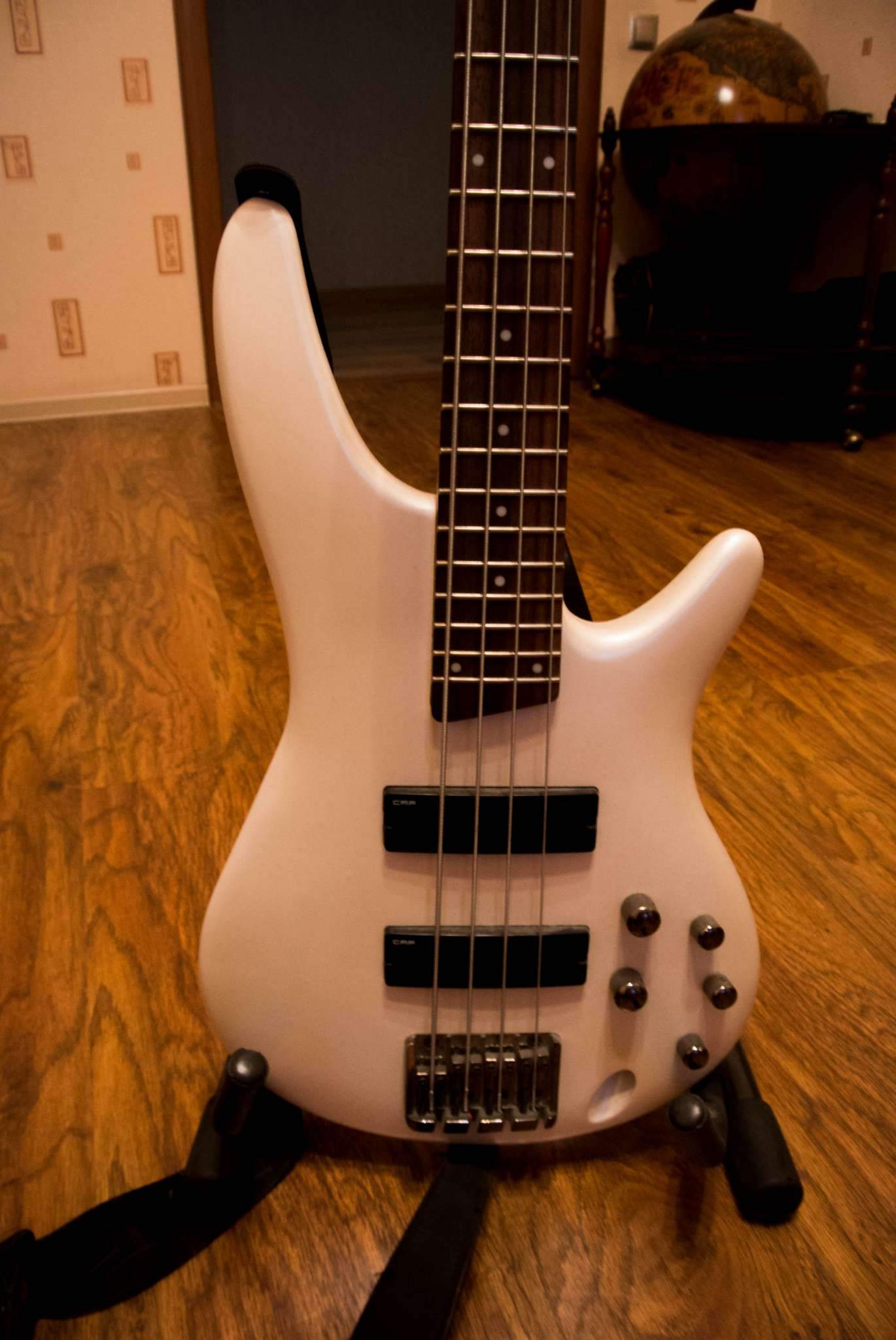 Спеки: цвет белый, гриф клен SR, лады medium, корпус агатис, бридж B105 (расстояние между струнами 16.5 мм), звукосниматели: EXF-4F (нек), EXF-4R (бридж), эквалайзер активный 3-полосный.