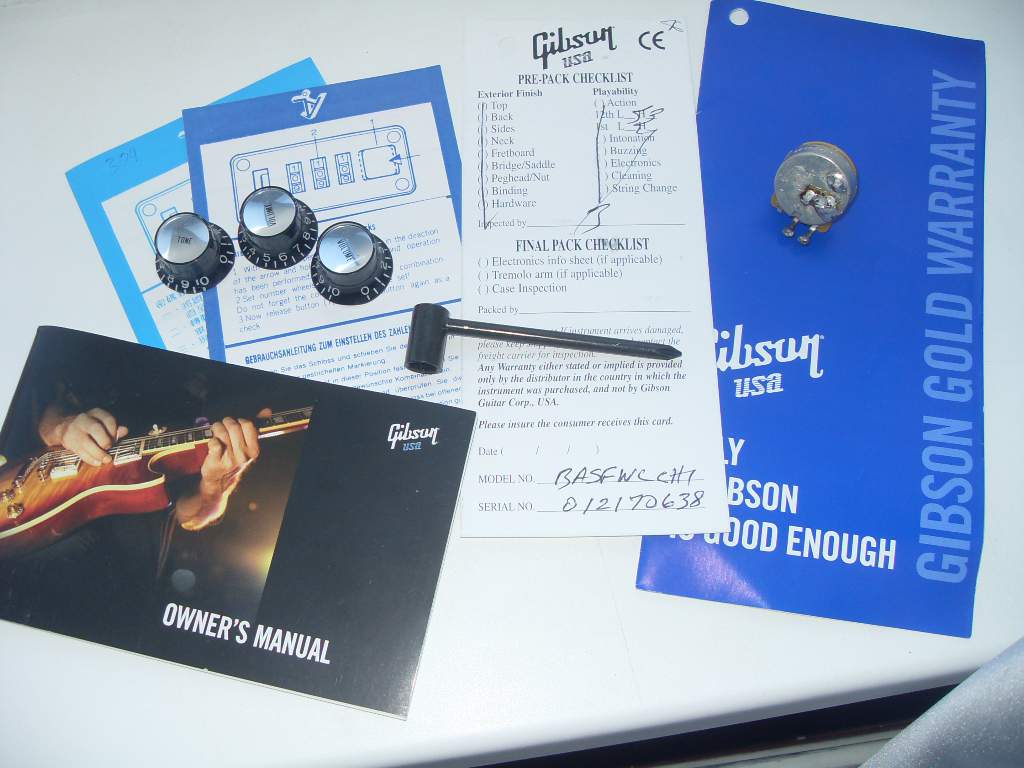 с инструментом идёт родной кейс Gibson, родные крутилки (3 штуки) и снятый родной потенциометр,анкерный ключ,документы