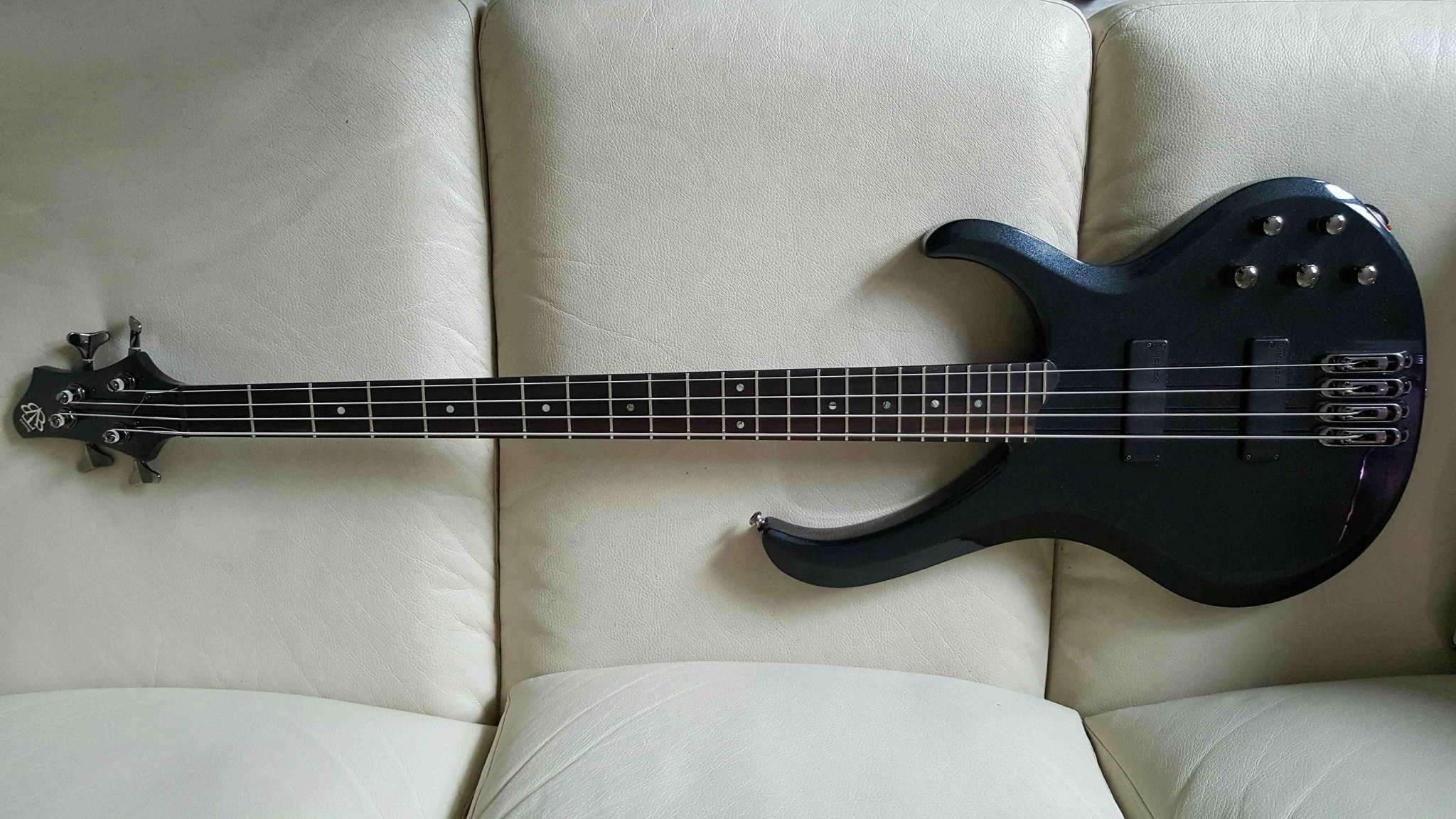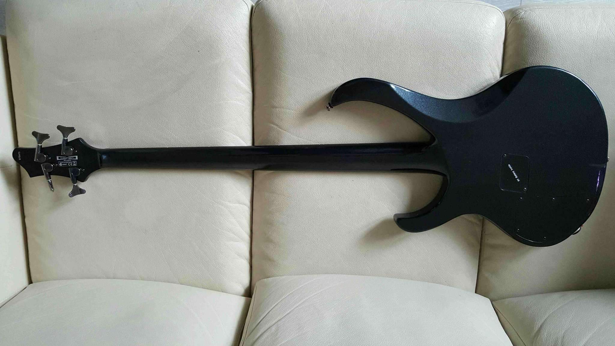 О гитаре: в отличном состоянии, активная с 3-х полосным эквалайзером, сквозной гриф с бесшумными звукоснимателями (никакого фона), раздельный бридж, гнездо джека с замком (локером), отстроена в гитарной мастерской, стоят новые струны ernie ball 40-100 nickel.