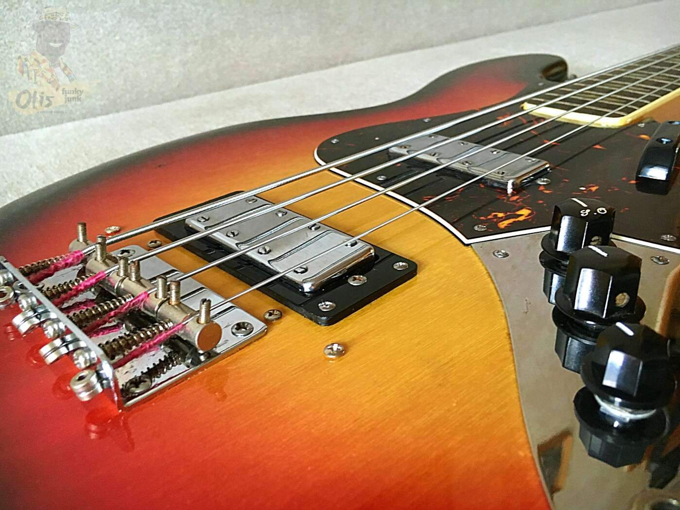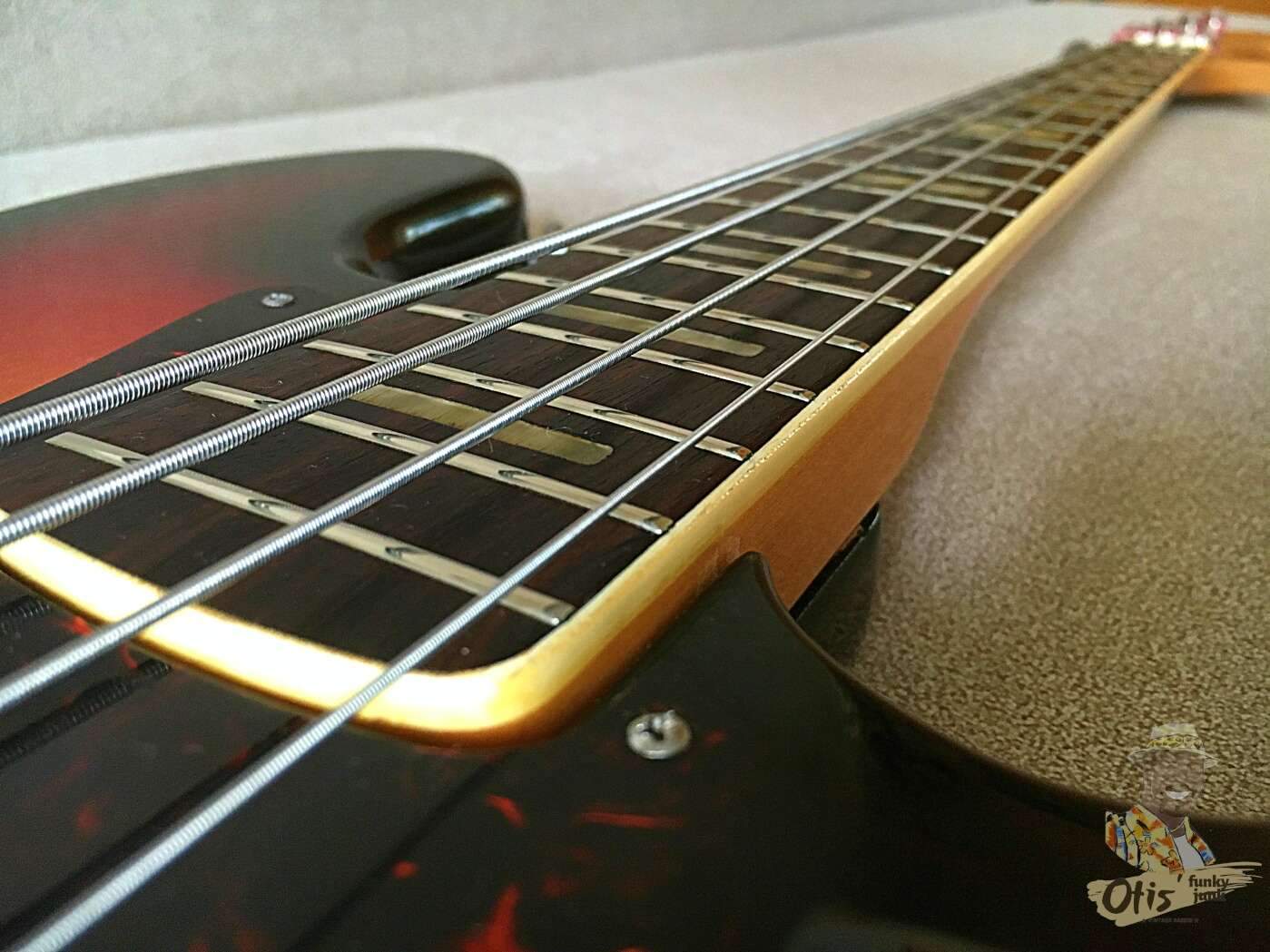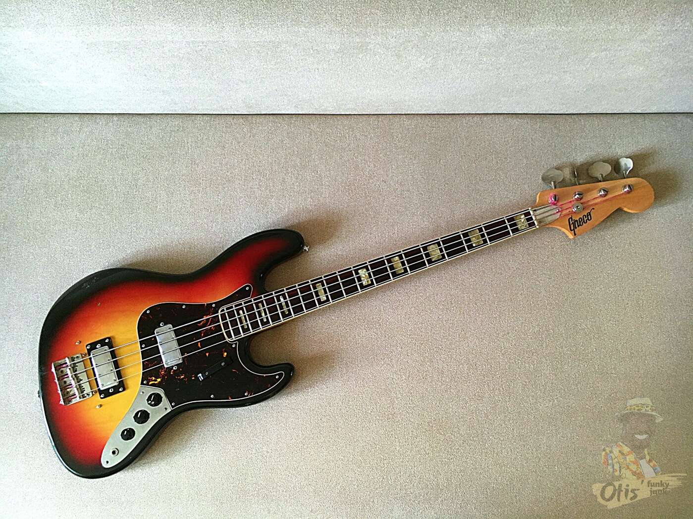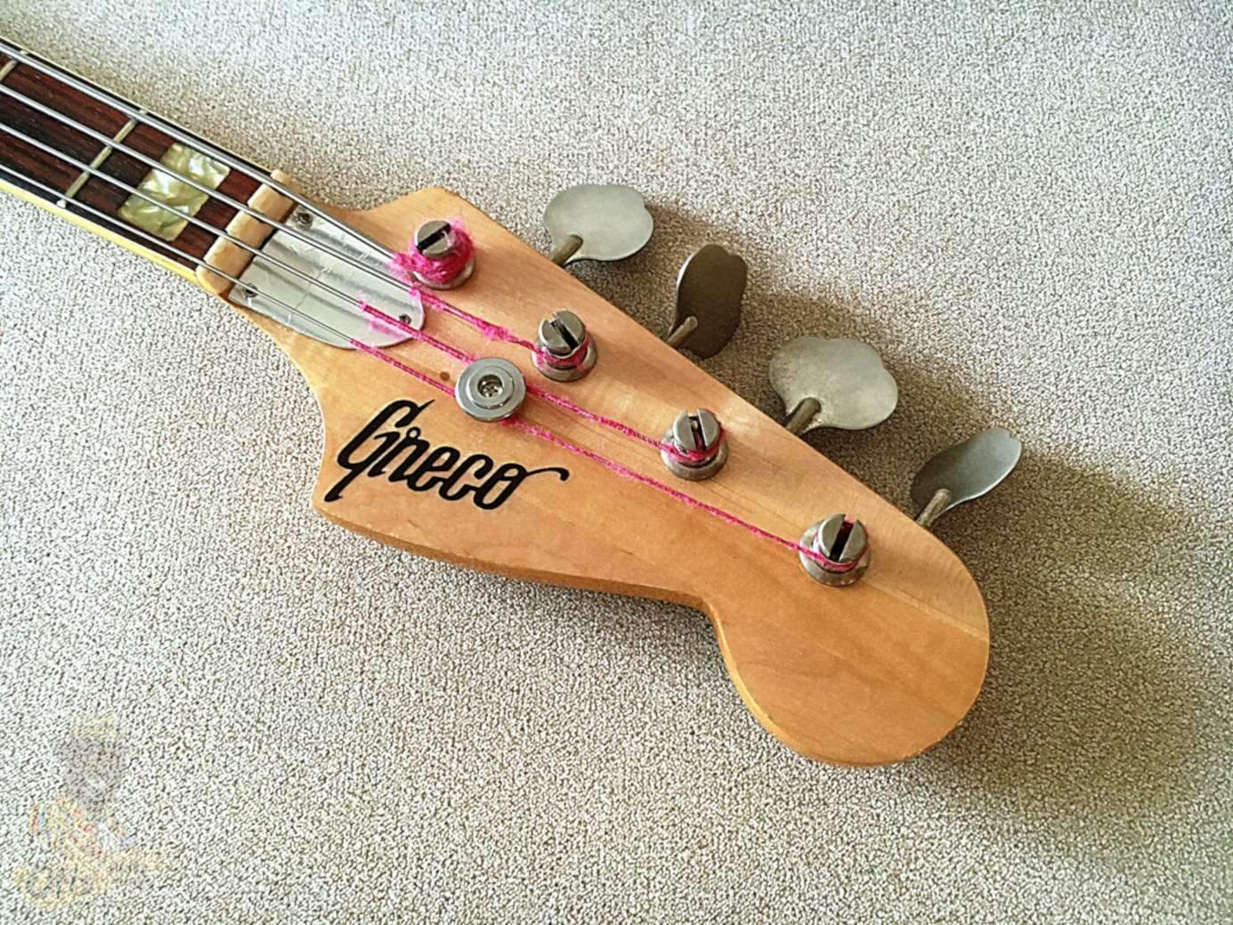 Базовая модель ранних годов выпуска с нормальной фурнитурой и добротной сборкой. К качеству инструмента вопросов нет - стабильный гриф из трех кусков клена, увесистый корпус из махагони весьма точно подогнаны друг к другу. Геометрия в полном порядке, механически все элементы регулируются и подлежат отстройке. Штатные минихамбакеры Maxon, несмотря на возраст, прекрасно себя чувствуют, выдают плотный, упругий низ с чистыми верхами, при этом без паразитного фона, как у синглов. В отличии от сингловых версий Greco, звук здесь более основательный и низастый, с сочной серединой; приятный рык и отсутствие чрезмерной яркости - главный аргумент при выборе баса с такой конфигурацией.