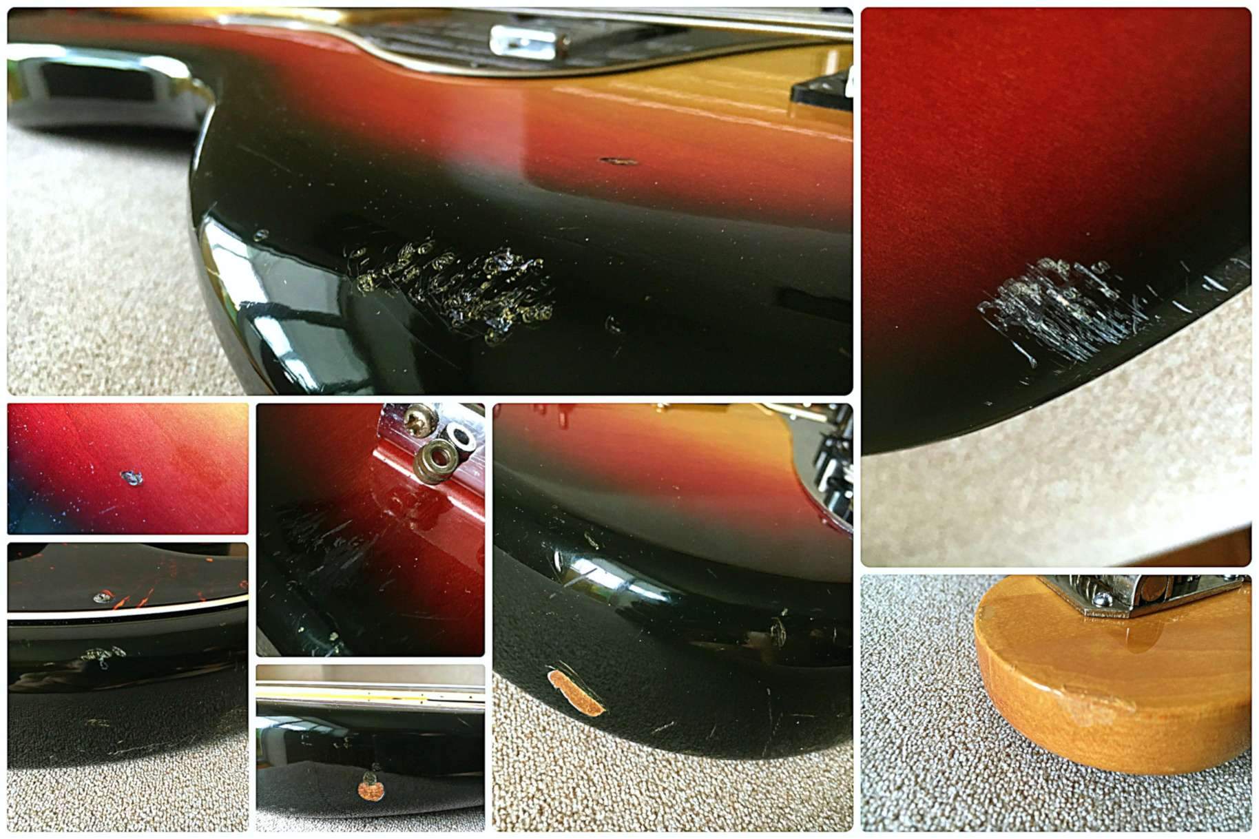 Состояние экземпляра хорошее, технические проблемы отсутствуют. Электроника, крепеж - родные, запас прочности впечатляет. Анкер работоспособен, имеет запас по регулировкам в обе стороны; лады с износом до 40%, выравнены и отполированы, проблем не доставят. Имеются недостатки по ЛКП корпуса: трещинки, вмятинки, сколы. Из вмешательств сделан качественный рефиниш лицевой стороны головы грифа.