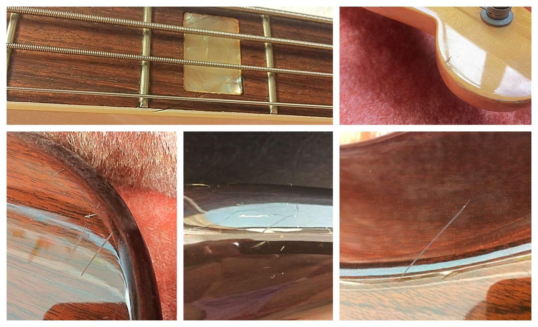 По электронике: бриджевый мини-хамбакер штатный Maxon, нековый заменен на схожий с керамическим магнитом (оригинальный отдам в придачу, нуждается в перемотке); потенциометры родные, никакого хруста, шумов. Звук своеобразный, характерный: упругий, плотный низ, воздушные, "прозрачные", чистые верха. Сигнал ровный, выход мощный, фона от звукоснимателей нет.