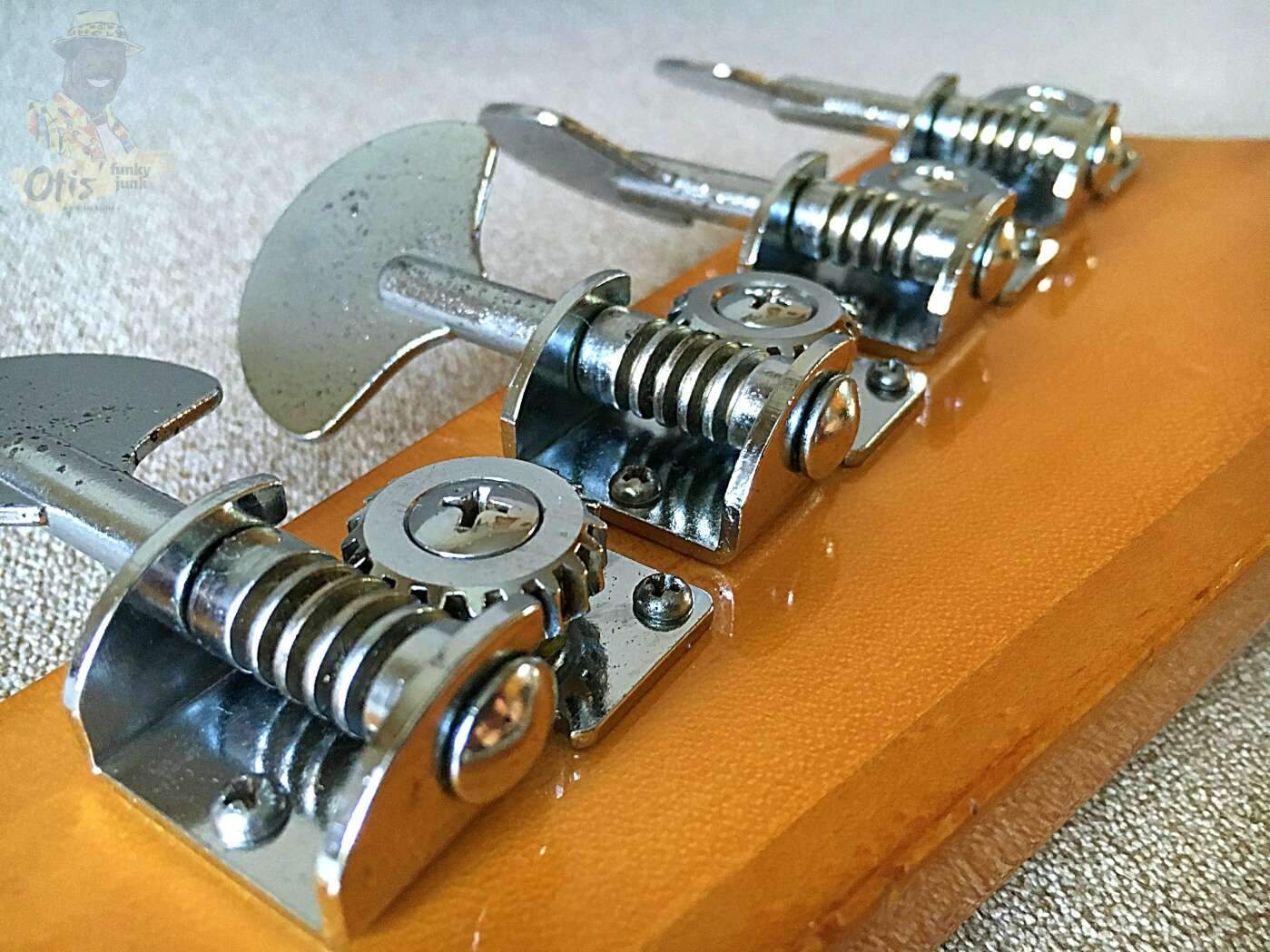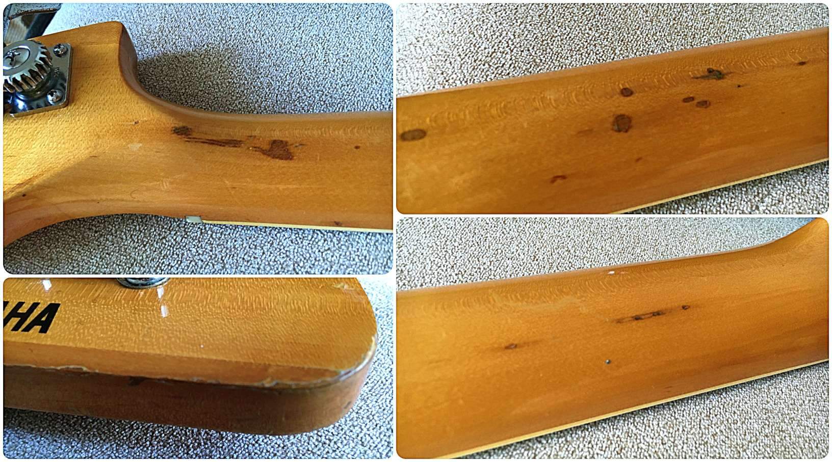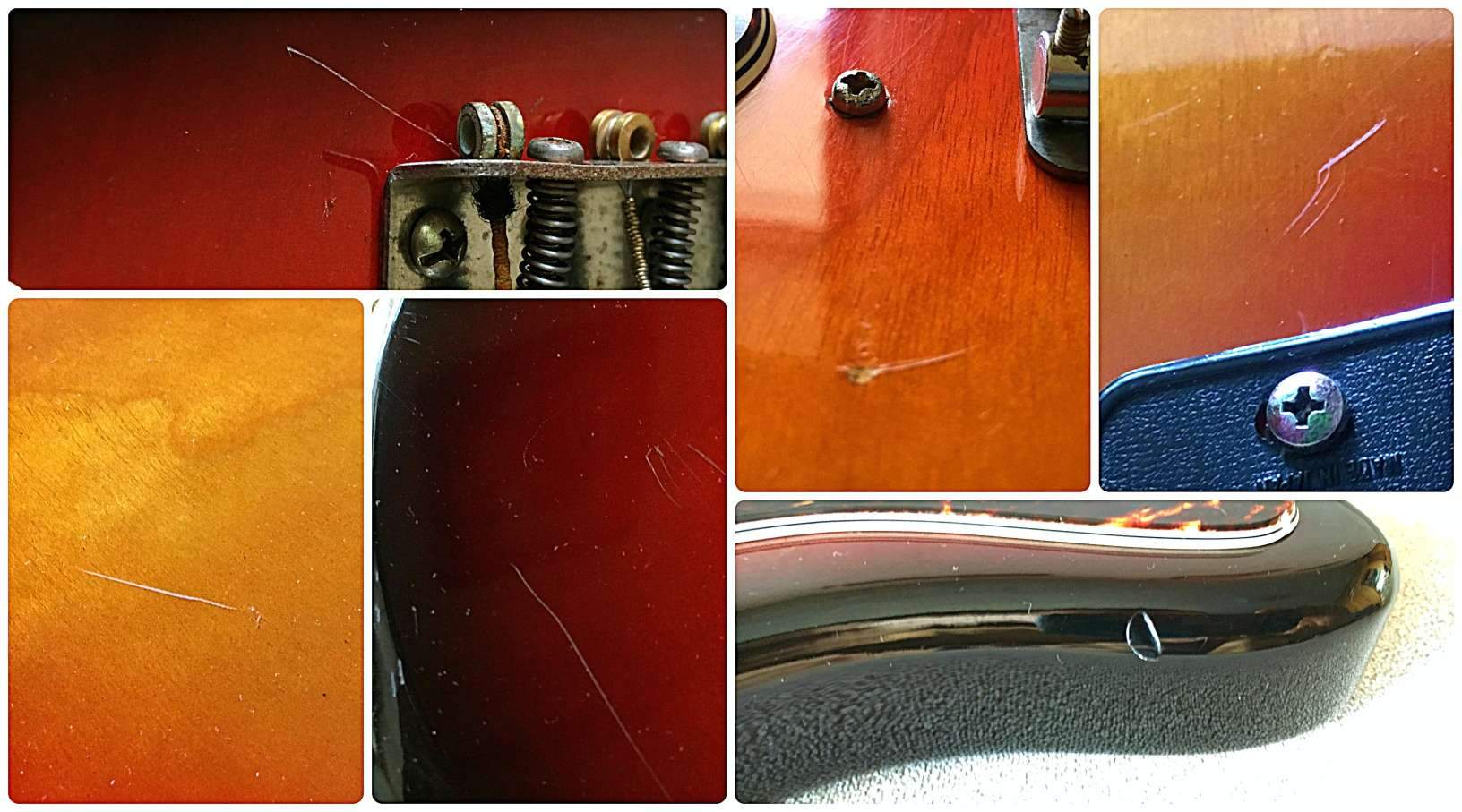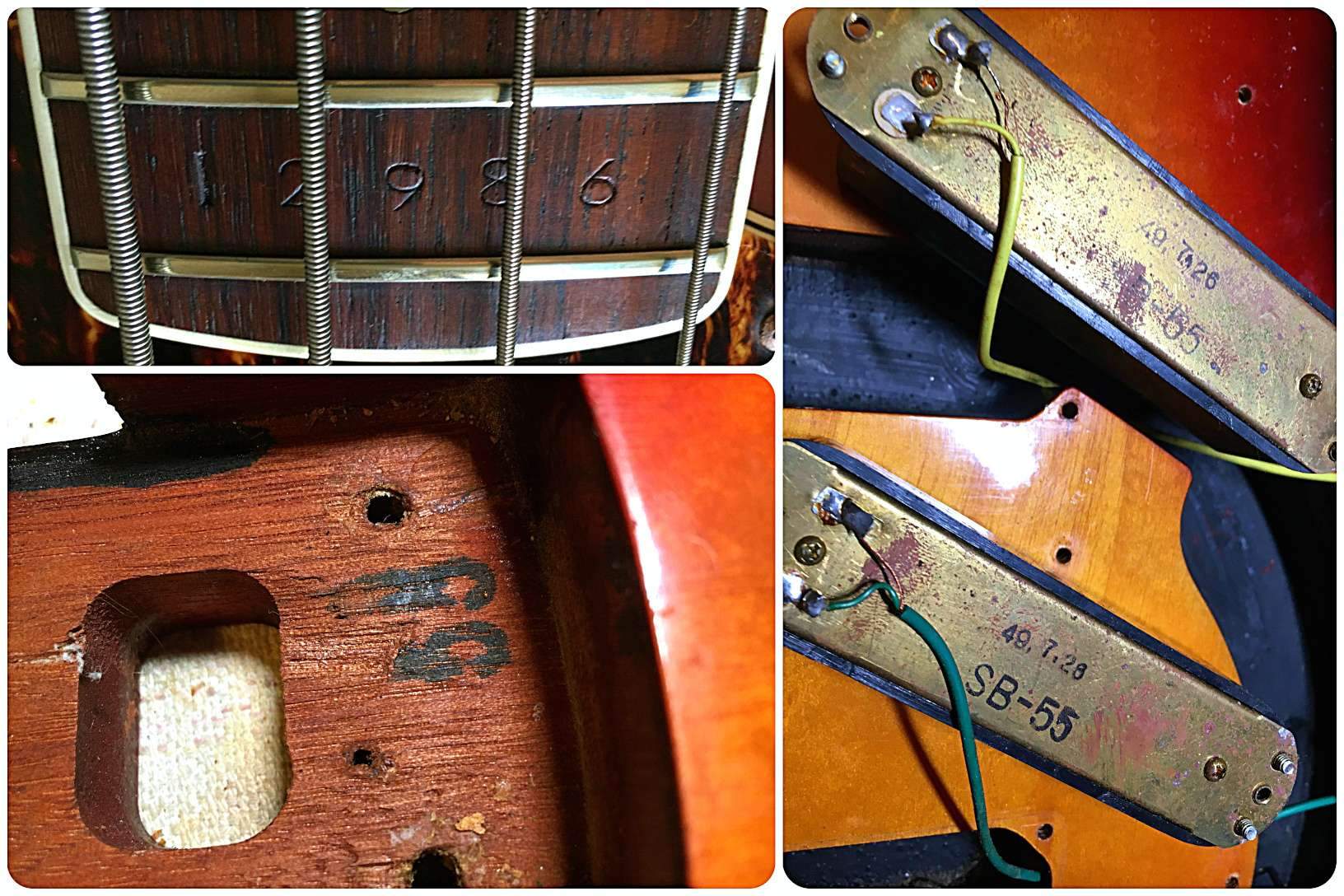 Состояние экземпляра хорошее. Гриф ровный, лады ровнялись и полировались, имеют износ до 40%, анкер в работоспособном состоянии; колки с минимально ощутимым люфтом; по электронной части был заменен весь тембрблок (потенциометры, провода, разъем), экранировка - штатная. Косметика приличная, однако имеются недостатки в виде царапин, мелких сколов и вмятинок на корпусе и на грифе (см. фото). Крышку сервисного окошка для регулировки анкера на тыльной стороне корпусе слегка коробит, установлен неродной крепеж. Серийный номер на накладке грифа читается с легкостью. Предоставлю дополнительные фото по необходимости.