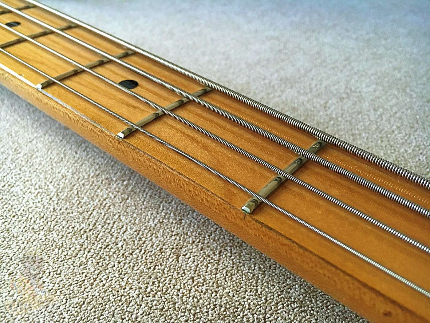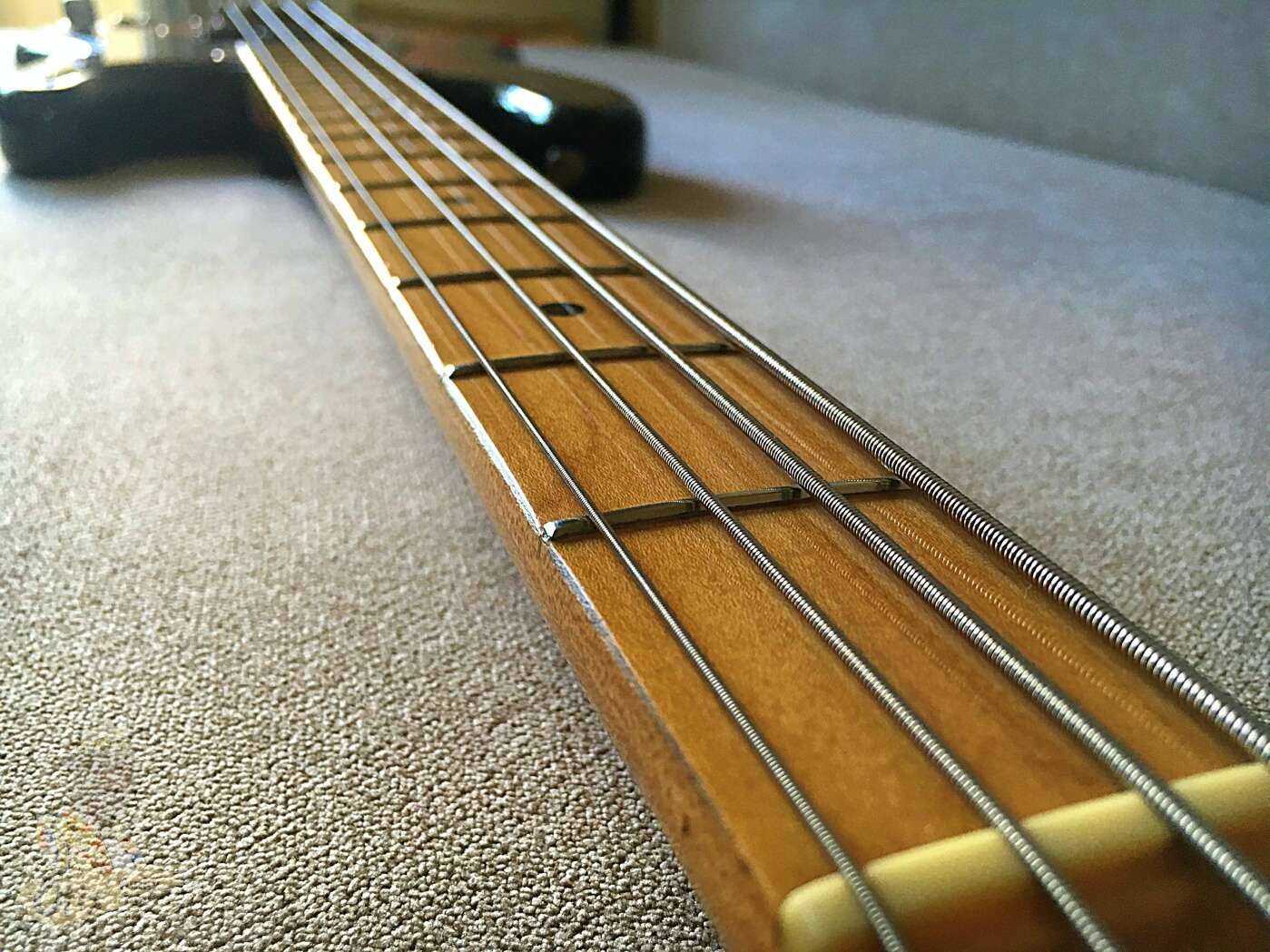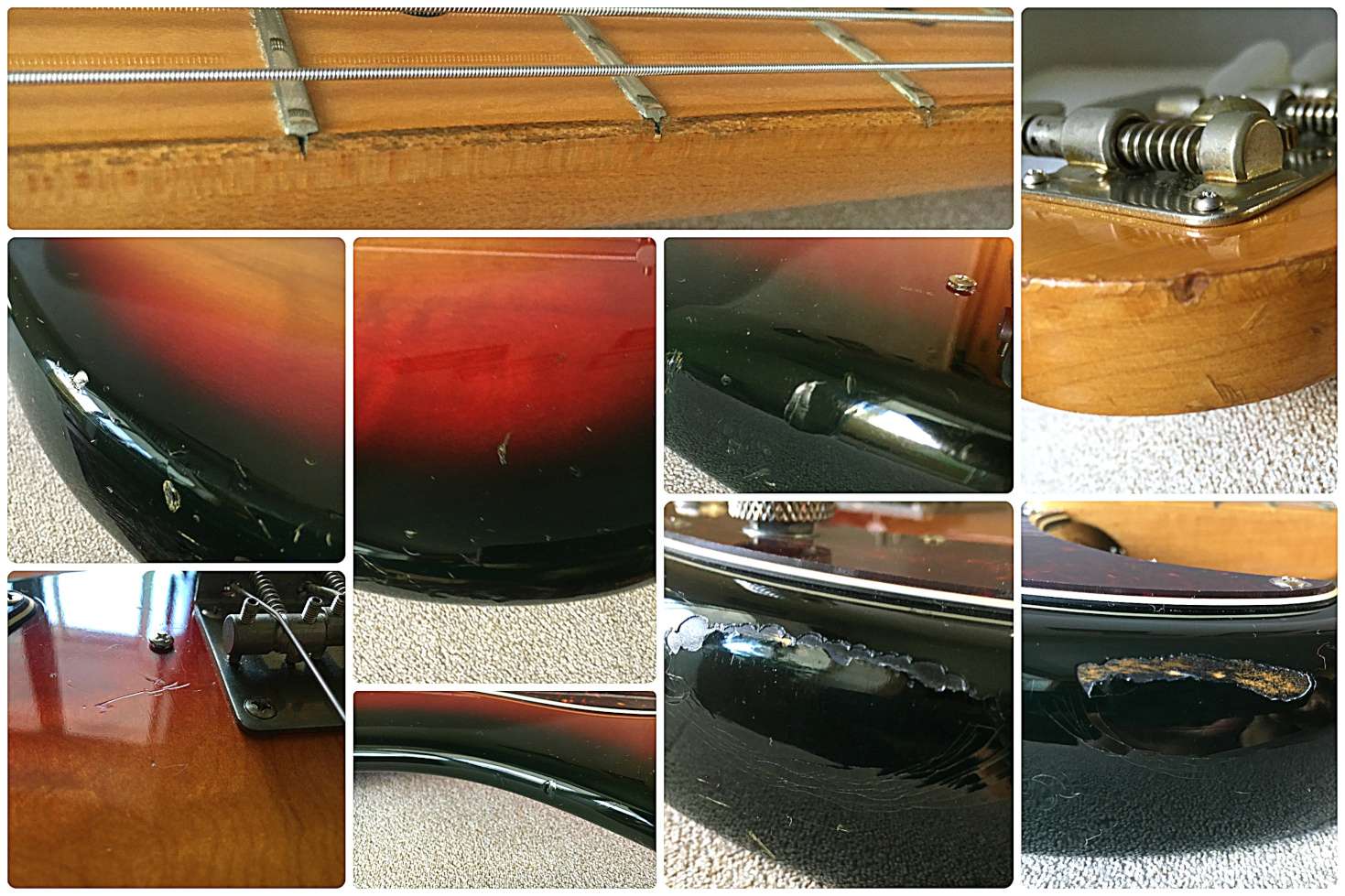 Косметическое состояние инструмента удовлетворительное, по корпусу тут и там присутствуют сколы и вмятинки (см. фото), все навесное - штат. Производилась полная шлифовка и полировка ладов, остаток более 60%. По электронике заменен один из потенциометров. Технически бас исправен, анкер легко отзывается, имеет большой запас регулировок в обоих направлениях, также как и седла на бридже. Текущие настройки: 2,0 мм над 12 ладом, легкость и приятность при игре гарантированы. Установлен комплект новых струн.