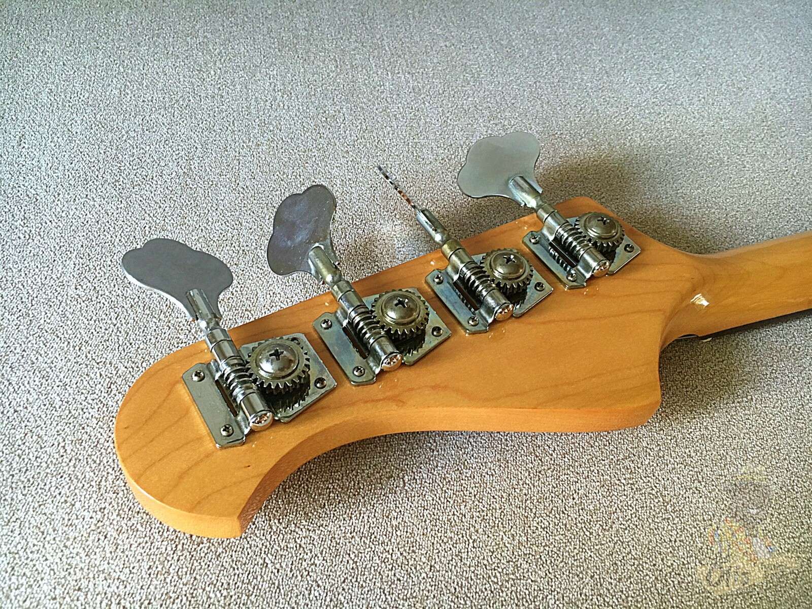 Сама сборка без просчетов - это самый настоящий Jazz Bass, с плотной посадкой грифа и правильным расположением всех элементов. Несколько выдает инструмент дешевая фурнитура - noname китайский бридж, колки Klyson-type c маленьким передаточным числом, пикгард с закосом под "черепаший панцирь", но большего за такую цену и не ожидаешь. В стоке инструмент однозначно неплох, в нем чувствуется потенциал "для прокачки", то есть это прекрасный конструктор за небольшие деньги.