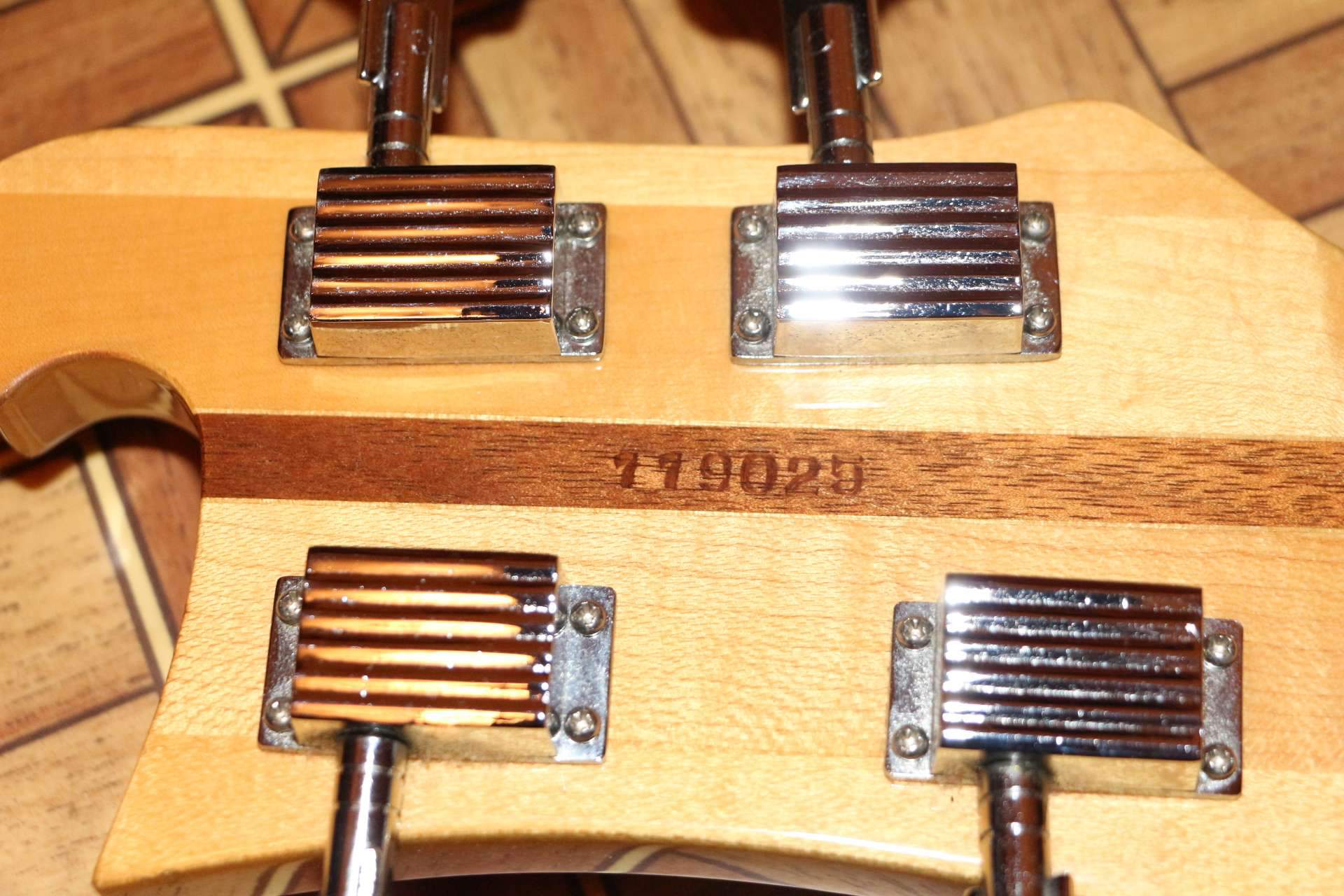 Бас японский, прим. 1977 год. Гриф -клен/палисандр. ВКЛЕННЫЙ. Корпус-клен. Гриф ровный, анкер тугой, но работает. Колки и элекрич. часть - рабочая. Мягкий чехол прилагается.