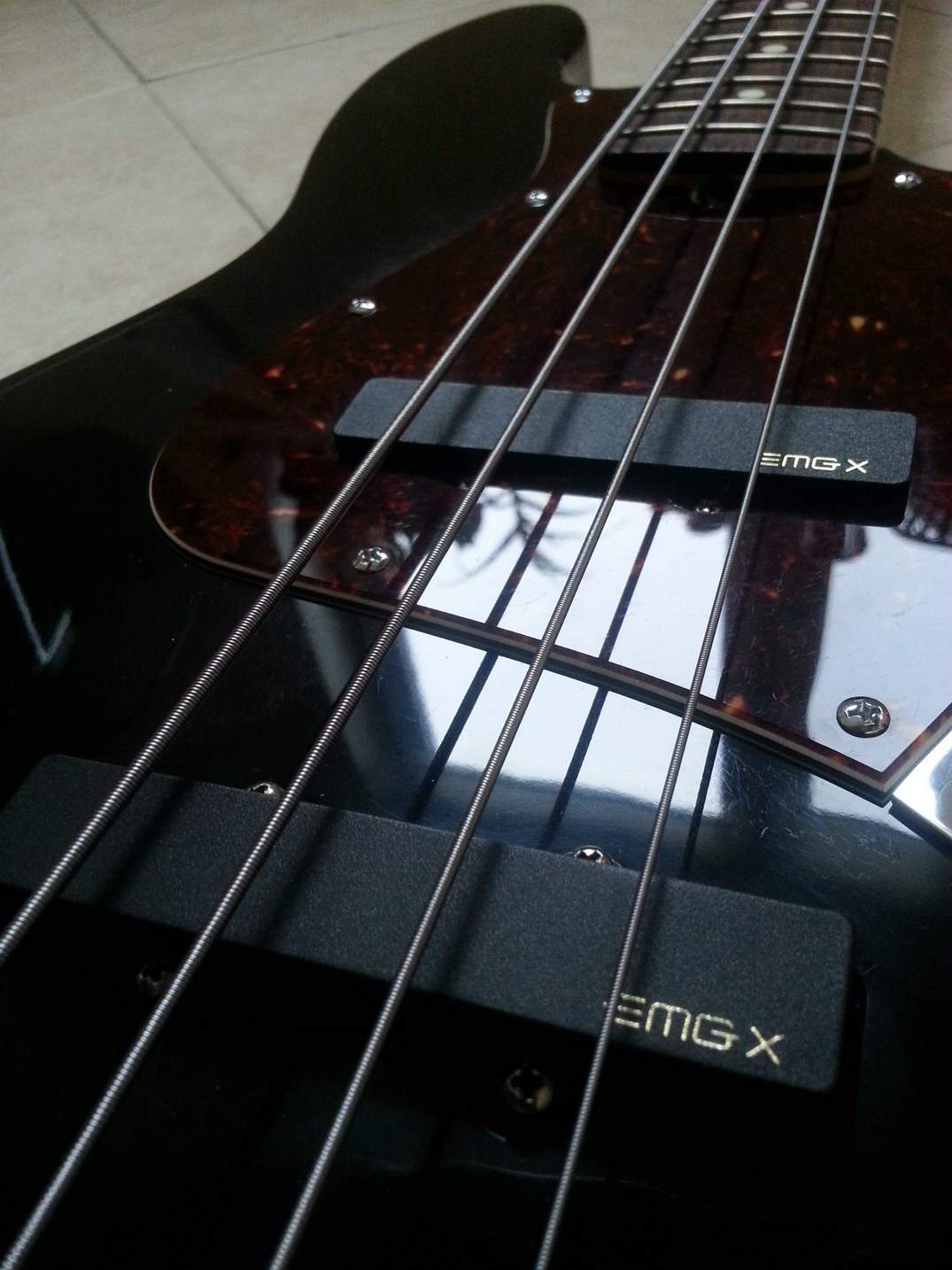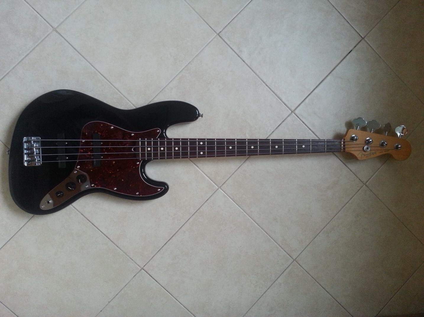 Разумеется немного истории. Начав интересоваться инструментом, я заказал из штатов себе два инструмента Fender JB. Спустя 1,5 месяца сделал выбор в пользу одного из них, хотя у обоих имеются преимущества друг перед другом. Например, у JB из объявления звукосниматели совершенно не фонят, чего не могу сказать про JB, который оставляю себе. Изначально были эстетические проблемы с порожком (прежний хозяин зачем-то установил порожек от Presicion), но они решены у мастера. Также производилась отстройка мензуры инструмента. Бас-гитара разыграна, струны располагаются довольно низко к грифу.