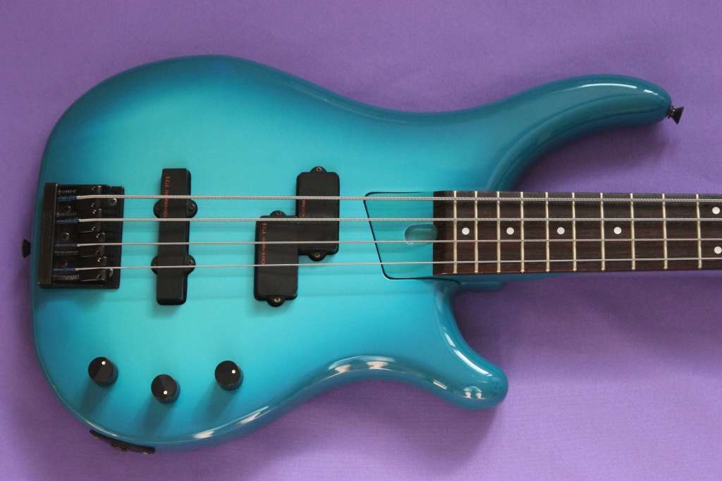 Замечательный бас, очень лёгкий, красивый и классно звучащий. Прекрасный вариант для концертной деятельности, когда лишние кило и габариты создают проблемы при передвижении. К тому же инструмент звучит очень взросло, мощно, пробивно, с хорошей читаемостью. Также инструмент будет очень удобен гитаристам, записывающим басовые партии т.к. бас, лежит в руке практически как гитара. Бас полностью исправен, накладка грифа почищена и пропитана лимонным маслом, установлены новые струны, уложены низко,играть одно удовольствие. На корпусе имеется один скол лака снизу и немного сбита краска в месте крепления грифа, если бы не эти мелкие недочёты, то бас практически как новый. Стоит новая крона.