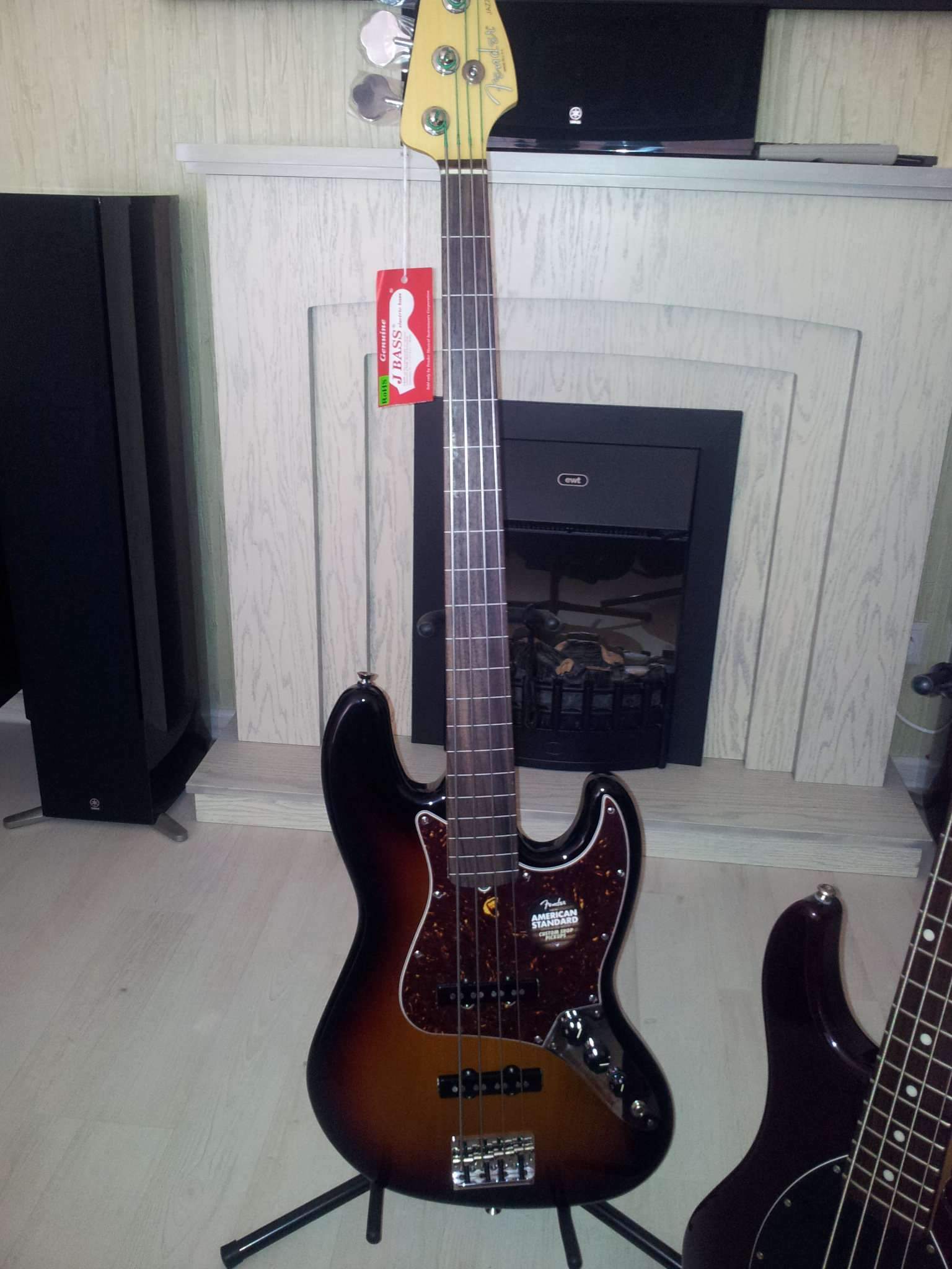 Продаю свой безлад (с разметкой на грифе) Fender Jazz Bass American Standard 2013 в кейсе, цвет Sunburst, в идеальном состоянии. Покупал его на ебее в год выпуска. Звук отменный! Жесткий чехол от Fender в придачу + анкерный ключ и доки. Фото в приложении. Серийник US12311754. Цена инструмента 70000 р .