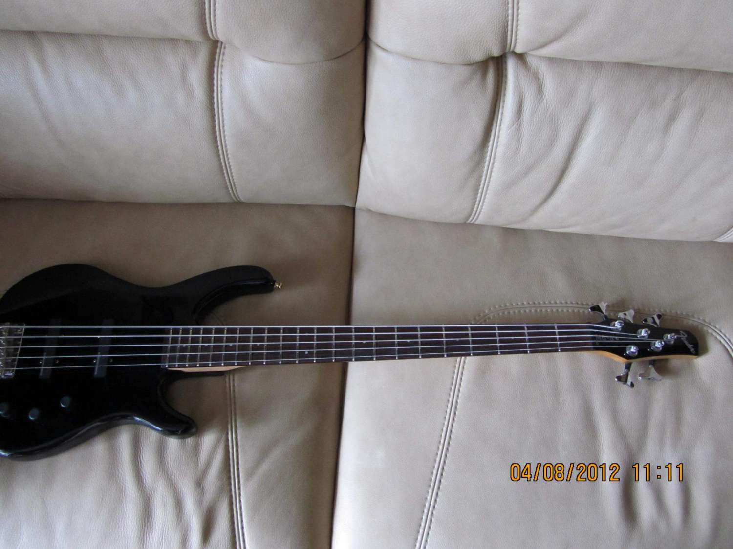 Стоит свежий набор струн Ernie Ball Nickel Wound 45-130. Отлично читается пятая струна.