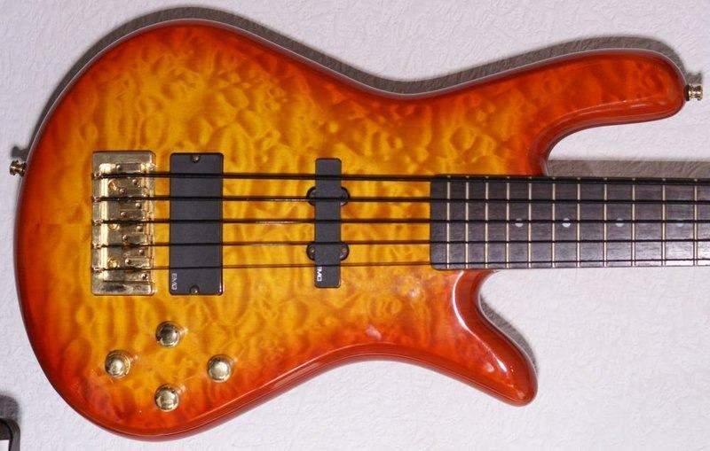 Мензура 35! 3 Полосы EQ- активный. Громкость нека, бриджа. 2 активных звукоснимателя. В неке сингл EMG J5. В бридже сингл в теле хамба EMG 40J5. 2 сингла это. Все это питается от двух крон 18v.