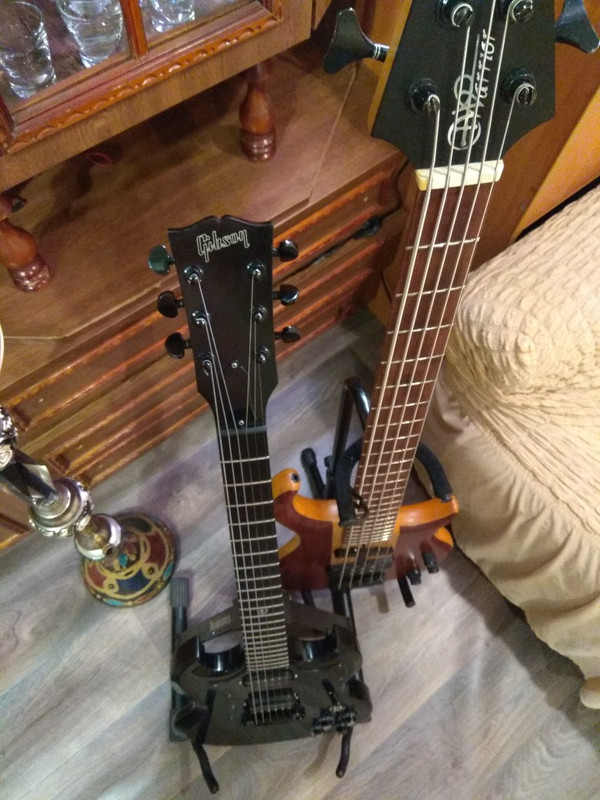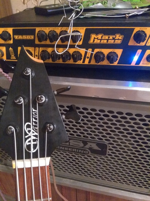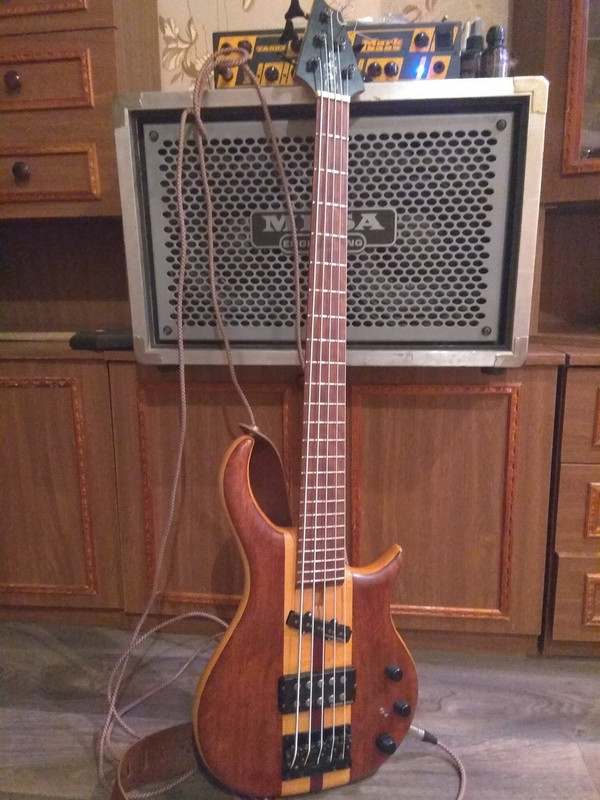 Бутиковый инструмент из частной коллекции. 5 струн, болченый гриф, безумное сочетание дерева (в т.ч. амарант, который не используется другими компаниями), активная электроника seymour duncan, потайные стреплоки, 5я и 4я струна выходят сквозь деку со стороны стреплока (фишка компании warrior. Такого нет на других инструментах). Идеальный баланс инструмента! Гриф.. после этого грифа другие уже никогда не будут прежними, настолько он удобен. Вариативность звучания космическая: хочешь прес, хочешь джаз, мьюзик мэн - без проблем и т.д.