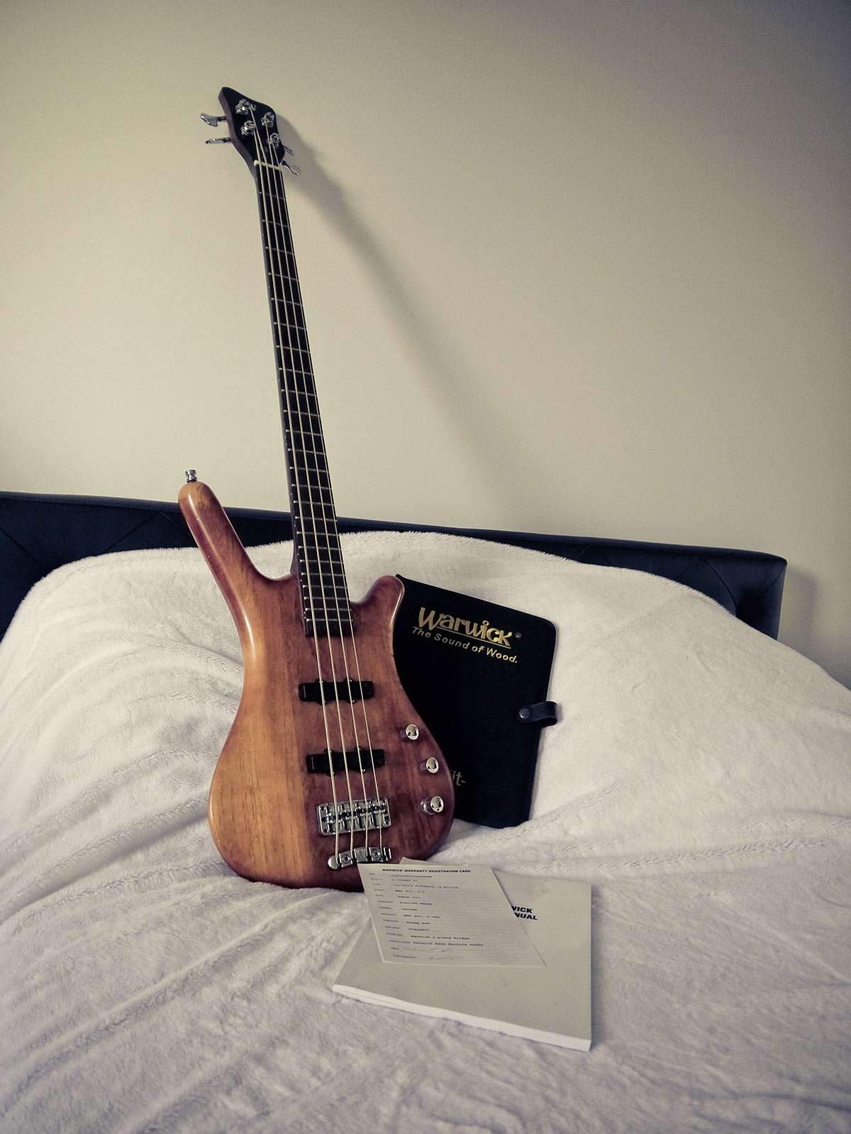 В комплекте идет бас, папка с документами (даже есть типа гарантийника,где указан именно этот бас), ключи и наипростейший чехол для переноски. Бас огонь, единственное, только струны свежие поставить надо